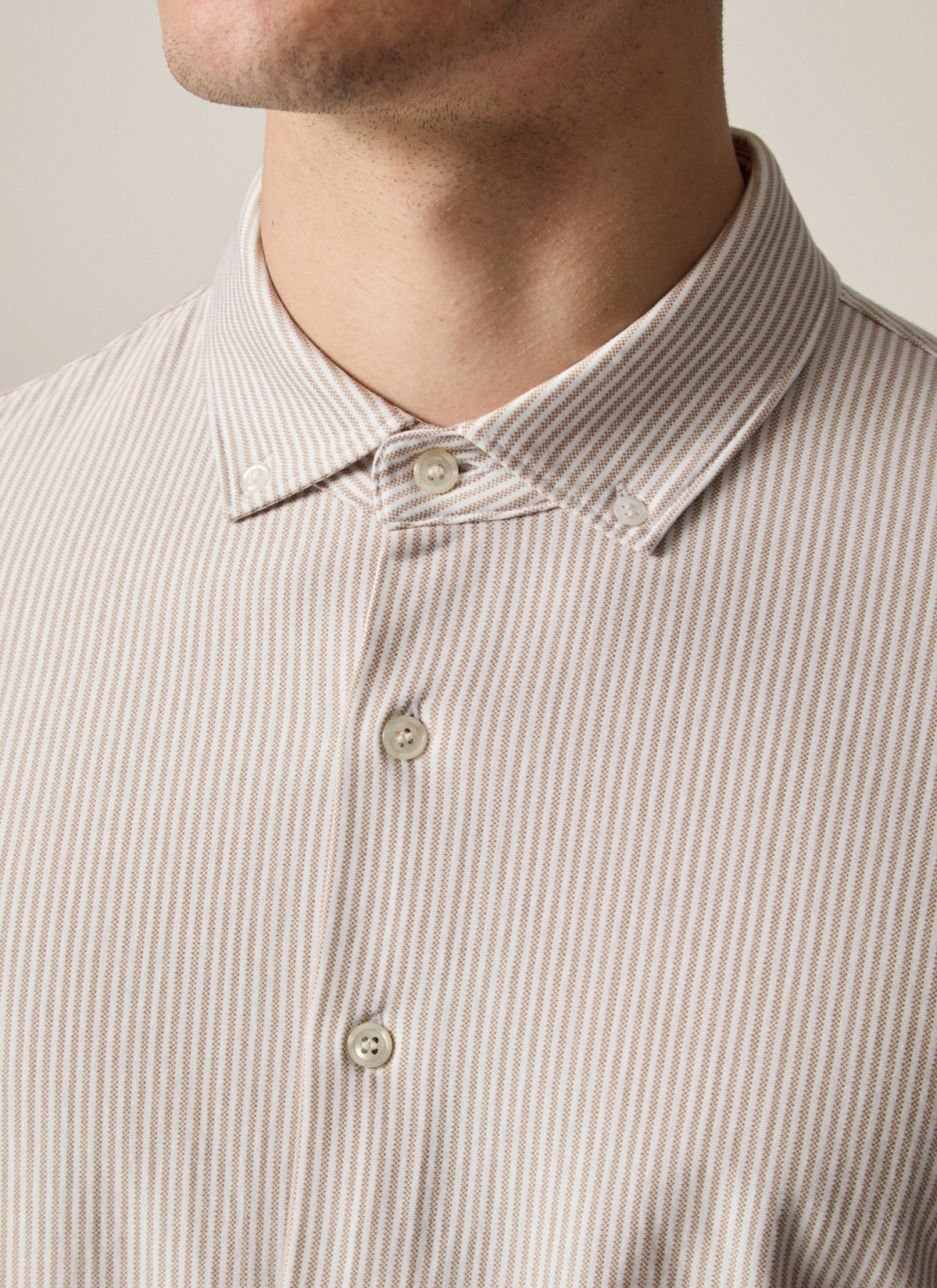 Das klassische Button-Down mit modernem Twist! Das Hemd im Modern Fit zeigt sich mit klassischem Kent Kragen. Die leicht strukturierte Oberfläche mit Streifenmuster verleiht dem Hemd eine dezent sportliche Note. Material: gefertigt aus Baumwolle ist das Hemd besonders hautfreundlich und atmungsaktiv. Haptik: kernig und leicht im Griff. Styling-Tipp: kombiniert mit einer dunklen Stoffhose wirkt der Look besonders elegant.