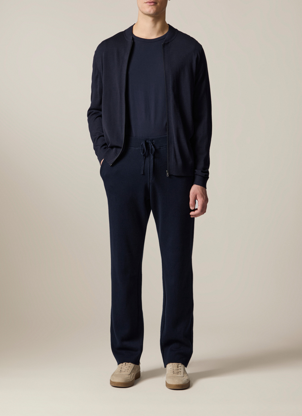 Die Hose zeigt sich im Regular Fit mit bequemem Gummibund und Bindebändern. Der cleane Schnitt und die seitlichen Eingriffstaschen verleihen der sportiven Hose einen eleganten Charakter. Material: gefertigt aus Baumwolle bietet die Hose einen hervorragenden Tragekomfort und ist besonders pflegeleicht . Haptik: weich und elastisch im Griff. Styling-Tipp: kombiniert mit dem passenden Pullover (Art. Nr.: 434200) entsteht ein entspannter Look.