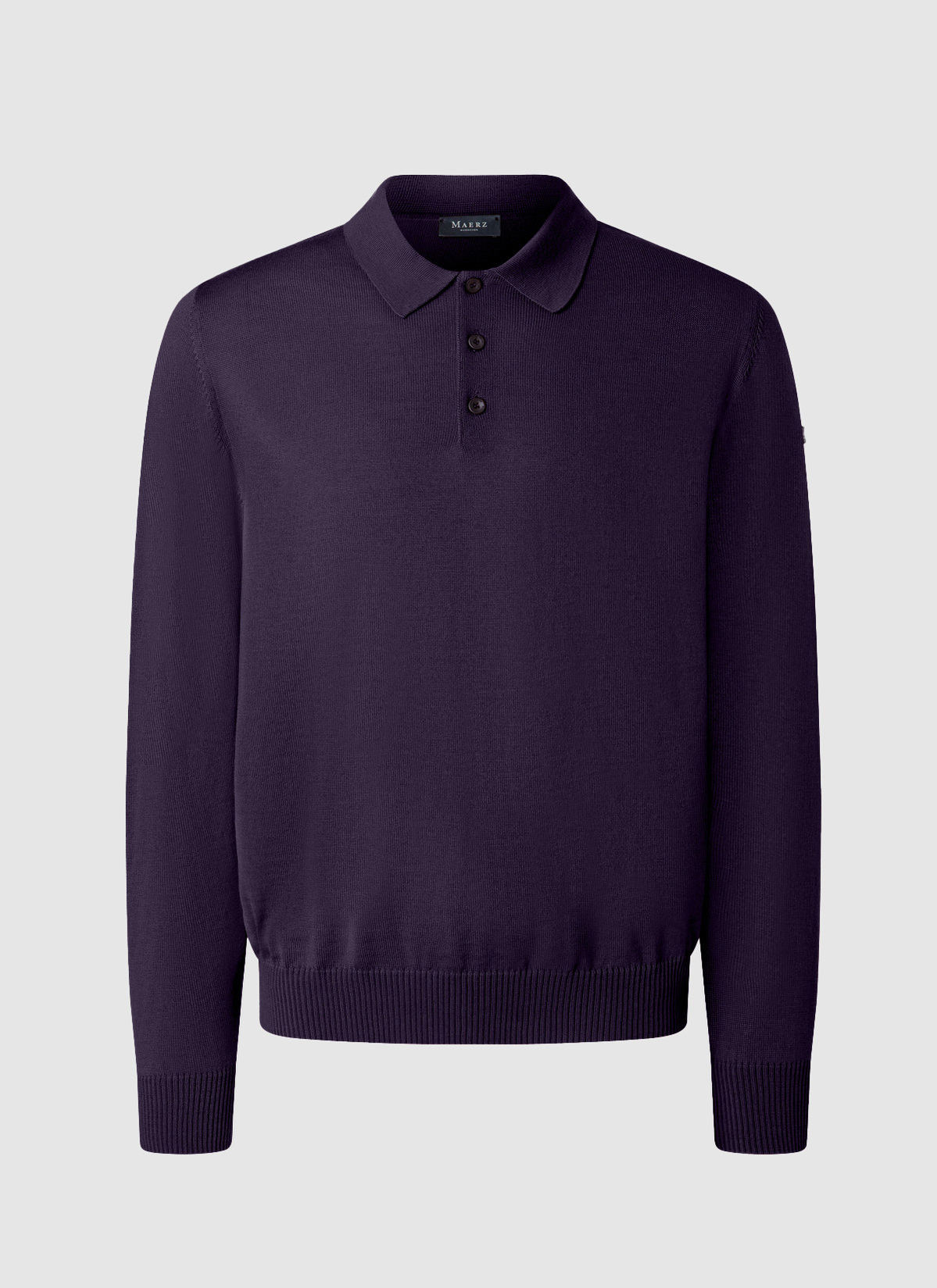 MAERZ Herren Kleidung Polokragenpullover|100% Merinowolle | Dark Eggplant
