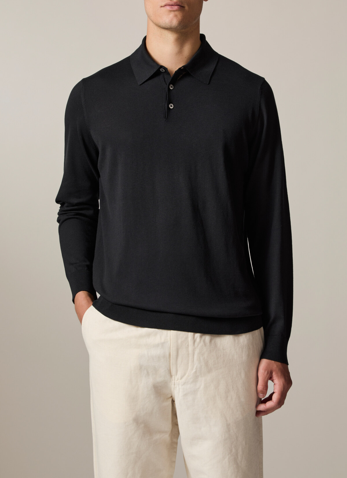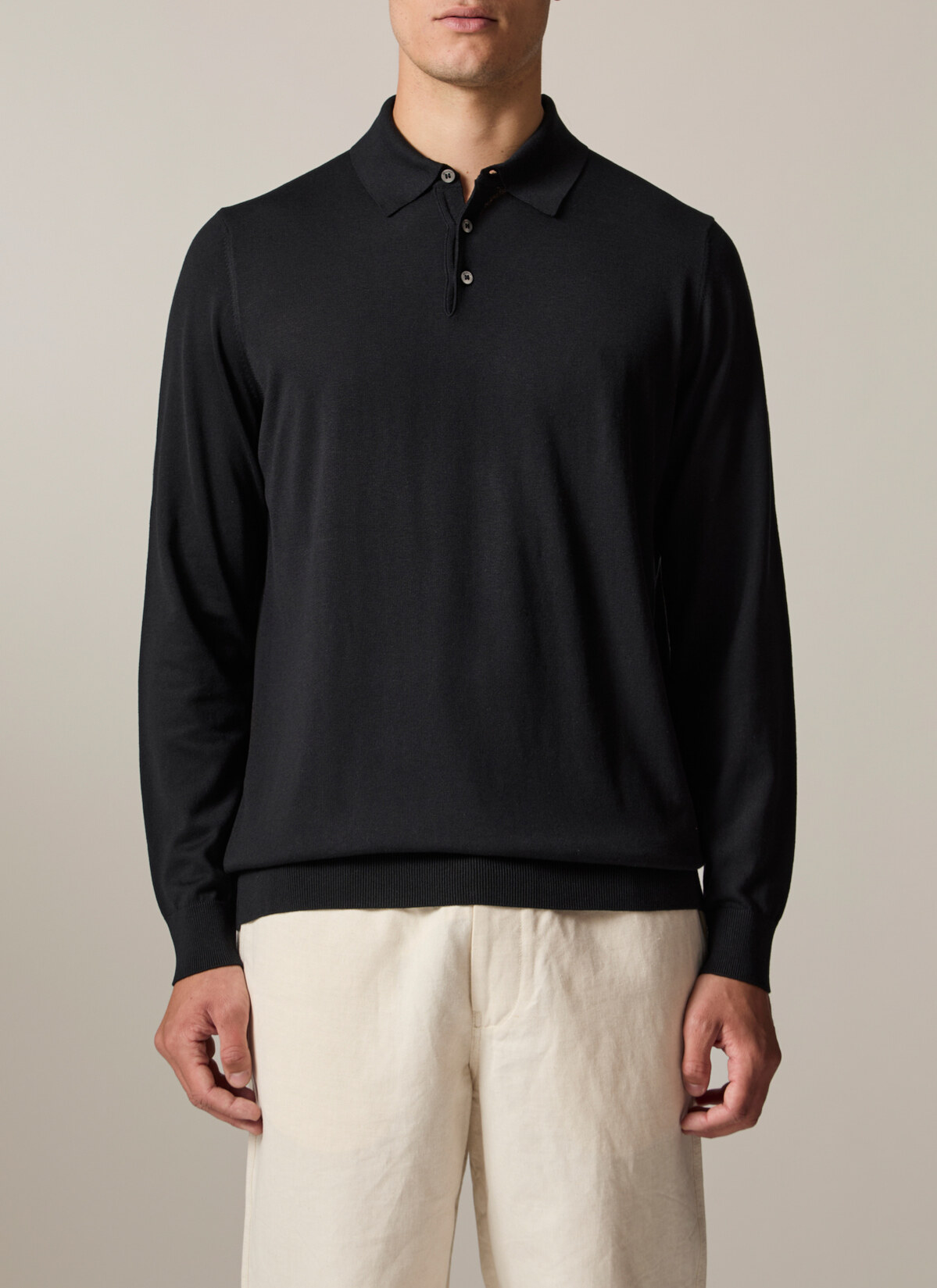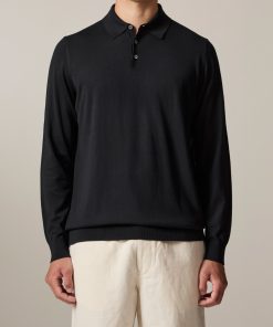 MAERZ Herren Kleidung Polokragenpullover|baumwoll-seide-mischung | Black
