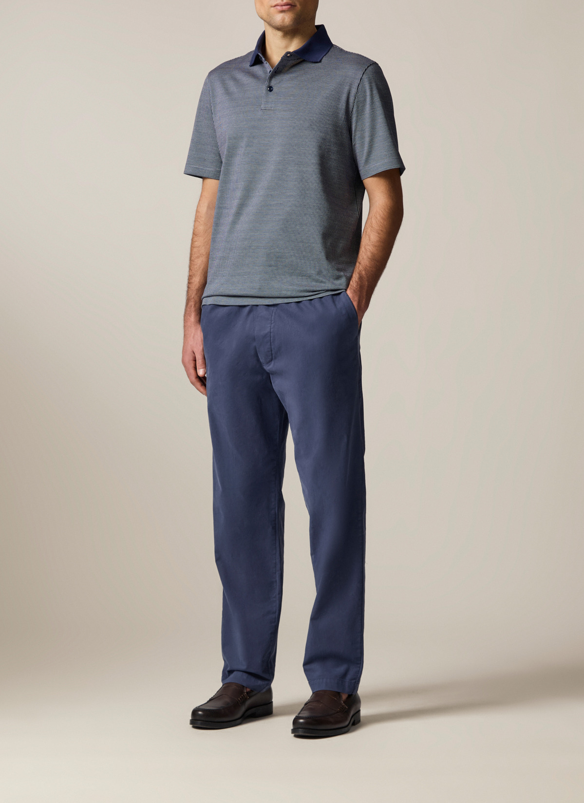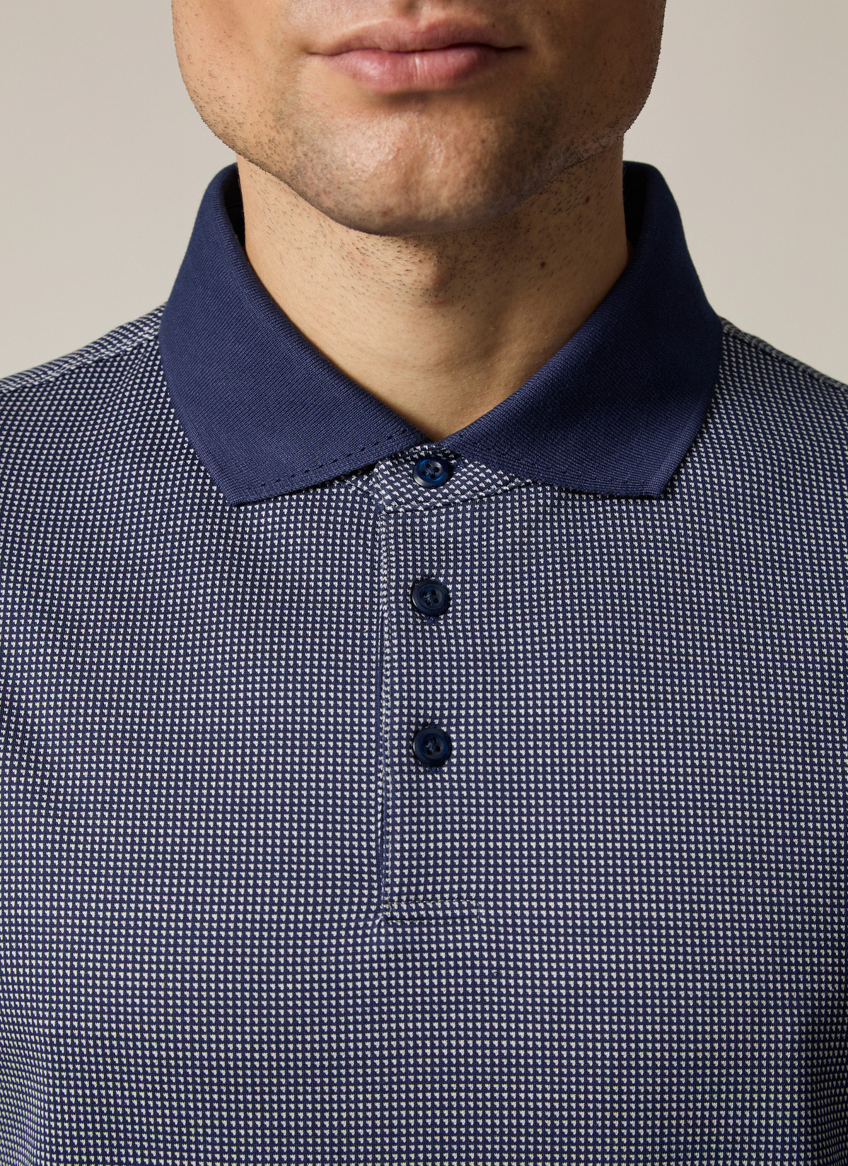 Das Polo zeigt sich im Regular Fit mit einer Knopfleiste und farblich abgehobenem Polokragen. Material: Gefertigt aus hochwertiger Baumwolle bietet es hervorragende Atmungsaktivität und ist besonders strapazierfähig. Optik: Das elegante Muster und die dezent strukturierte Oberfläche verleihen dem Polo einen individuellen Look. Haptik: Die Baumwolle fühlt sich angenehm glatt und äußerst komfortabel auf der Haut an. Styling-Tipp: kombiniert mit einer farblich passenden Hose entsteht ein besonders moderner Look.
