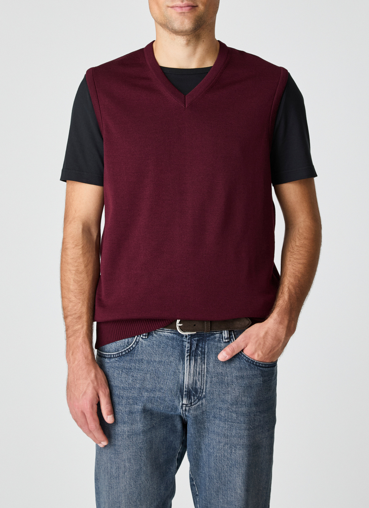 Cleanes Design trifft auf hochwertige Merinowolle! Pullunder mit V-Ausschnitt im Classic Fit – ein Klassiker für jeden Tag. Material: Merinowolle hat einen hohen Tragekomfort, ist feuchtigkeitsregulierend, geruchsneutral und besitzt eine wärmende sowie temperaturausgleichende Funktion. Haptik: cleanes, klassisches Maschenbild mit weichem Wollgriff. Hochwertige Verarbeitung mit handgekettelten Nähten und elastischen Bündchen. Tragegefühl: leicht und angenehm wärmend.