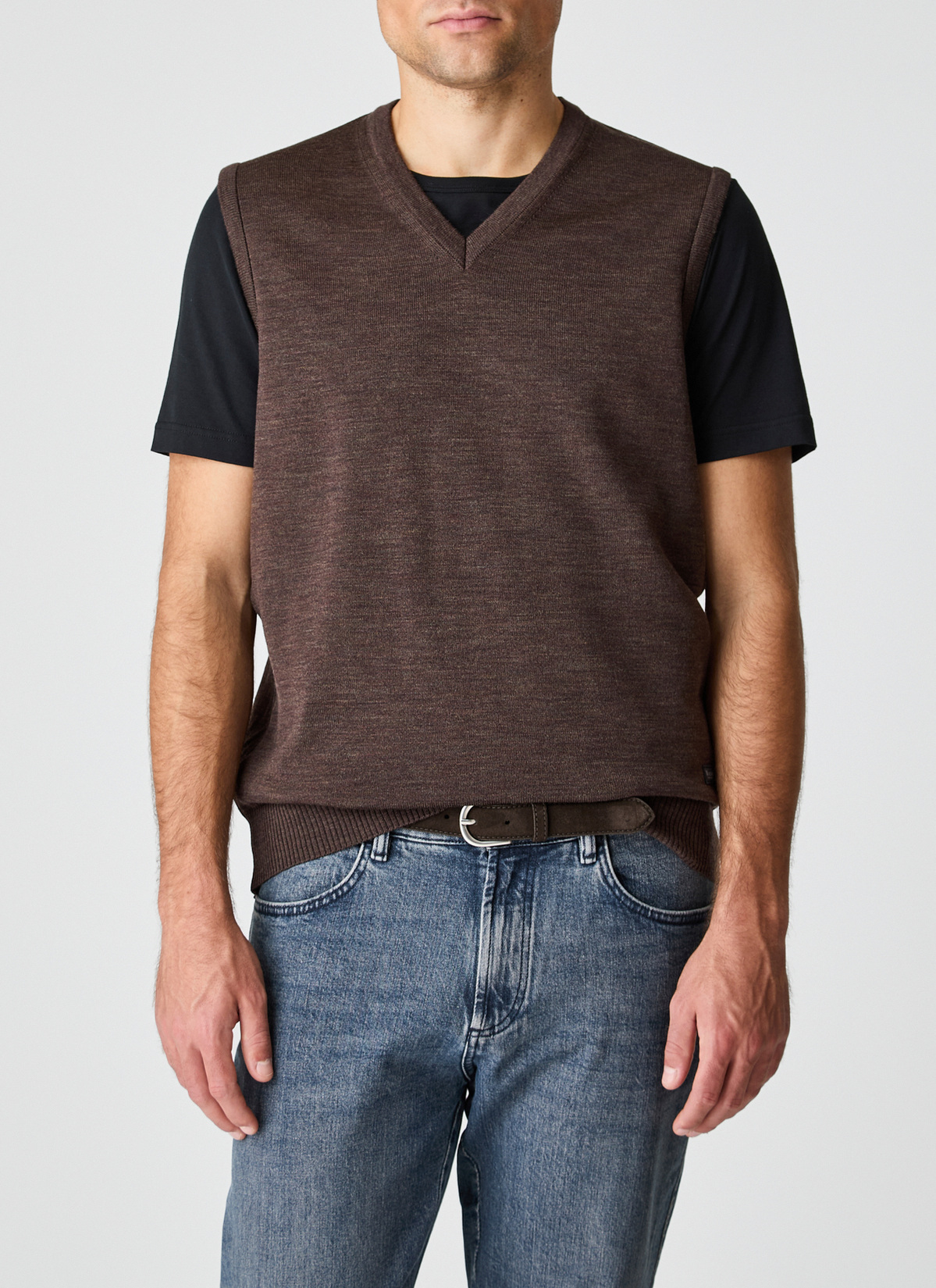 MAERZ Herren Kleidung Pullunder|100% Merinowolle | Field Brown