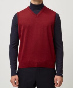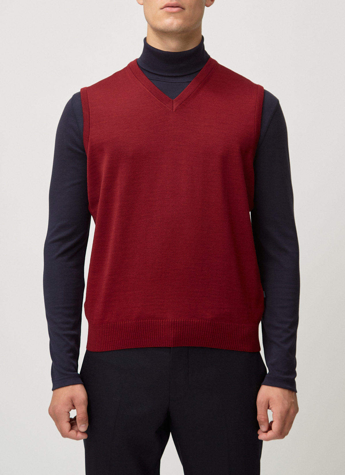 MAERZ Herren Kleidung Pullunder|100% Merinowolle | Weinrot