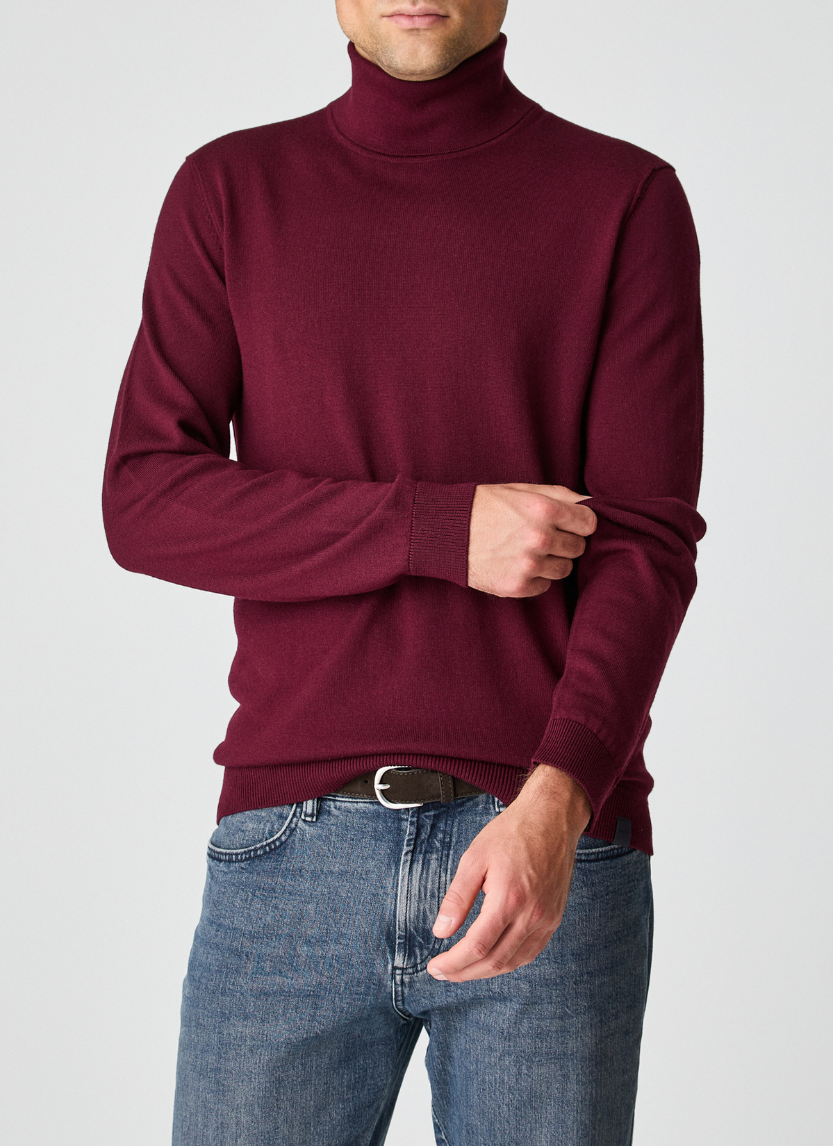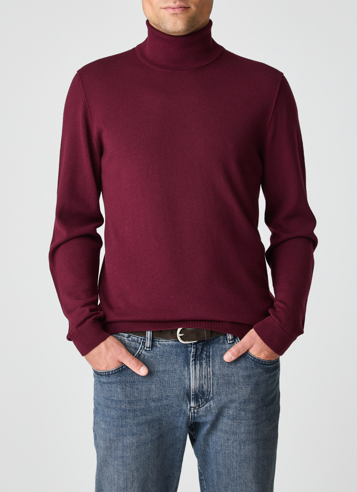 MAERZ Herren Kleidung Rollkragenpullover|100% Merinowolle | Barolo Wine