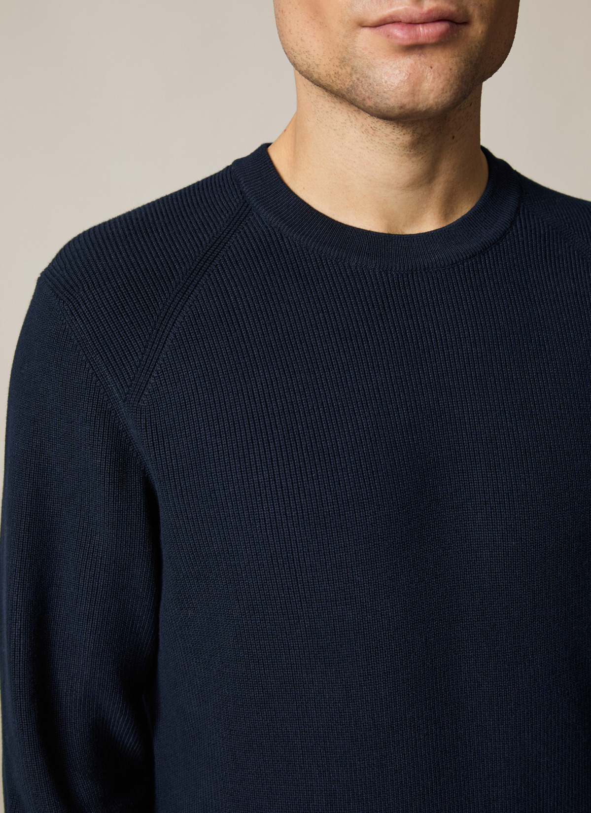Ein Basic Must-Have in jedem Kleiderschrank! Der Rundhalspullover zeigt sich mit markanter Perlfang-Optik. Durch französische Schulter erhält der Pullover eine besonders elegante, weiche und fließende Passform. Material: gefertigt aus Baumwolle bietet der Pullover einen hervorragenden Tragekomfort und ist besonders pflegeleicht . Haptik: kernig und weich im Griff. Styling-Tipp: kombiniert mit einem Hemd entsteht ein feiner Kontrast zum entspannten Stil des Pullovers.