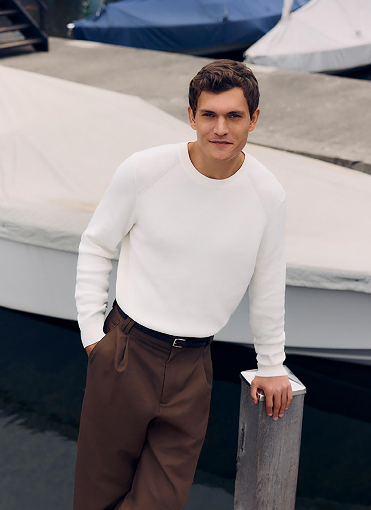 Ein Basic Must-Have in jedem Kleiderschrank! Der Rundhalspullover zeigt sich mit markanter Perlfang-Optik. Durch französische Schulter erhält der Pullover eine besonders elegante, weiche und fließende Passform. Material: gefertigt aus Baumwolle bietet der Pullover einen hervorragenden Tragekomfort und ist besonders pflegeleicht . Haptik: kernig und weich im Griff. Styling-Tipp: kombiniert mit einem Hemd entsteht ein feiner Kontrast zum entspannten Stil des Pullovers.