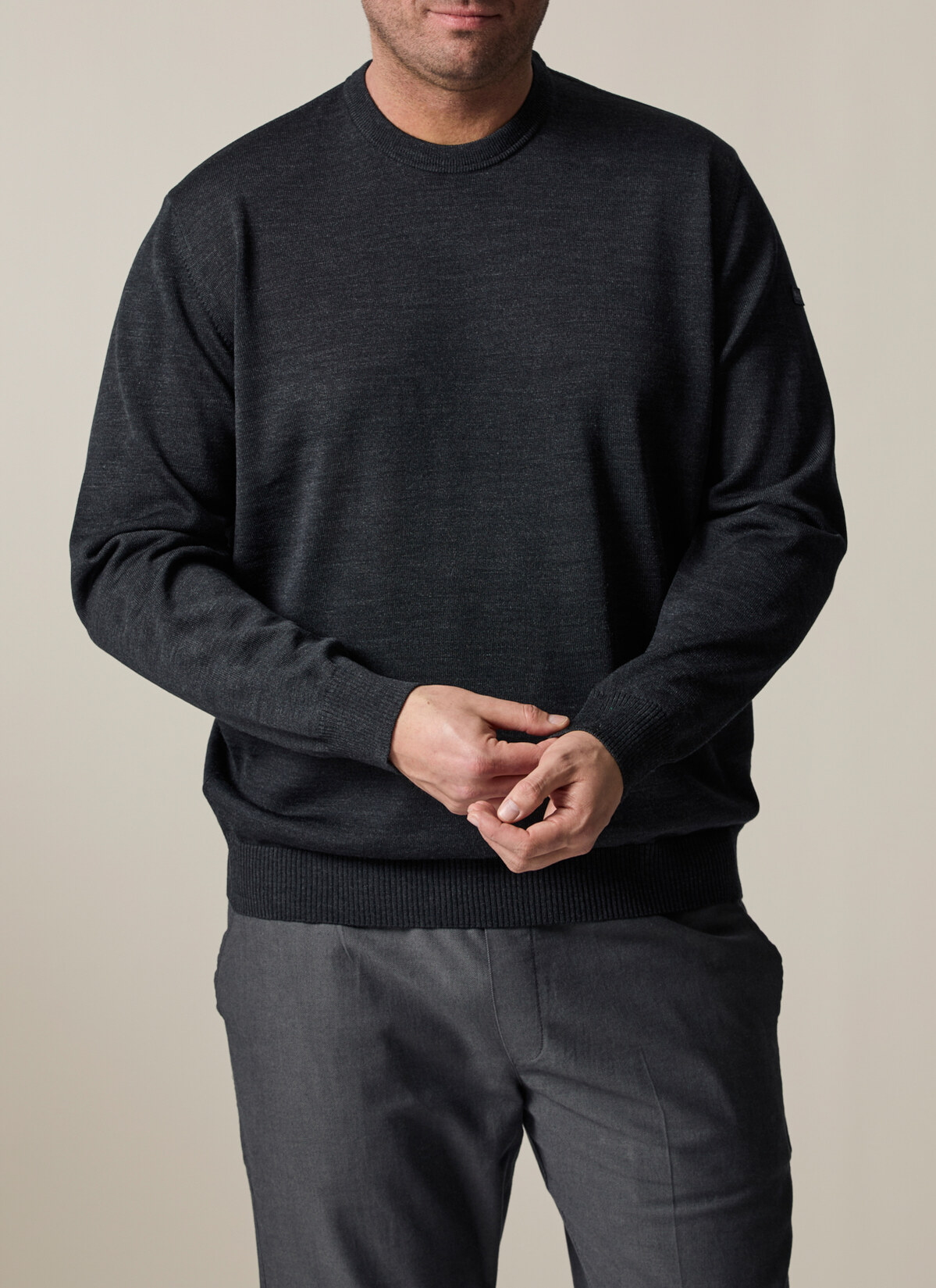 MAERZ Herren Kleidung Rundhalspullover|100% Merinowolle | Anthrazit