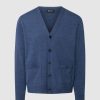 Zeitloser Stil in reiner Merinowolle – diese Strickjacke vereint klares Design mit funktionalem Komfort. Mit V-Ausschnitt, aufgesetzten Taschen und einem bequemen Regular Fit ist sie ein vielseitiger Klassiker für jeden Tag. Merinowolle sorgt für hohen Tragekomfort, wirkt feuchtigkeitsregulierend, geruchsneutral und bietet natürliche Wärme bei gleichzeitigem Temperaturausgleich. Das Maschenbild ist klassisch und gleichmäßig, der Griff weich und angenehm. Handgekettelte Nähte und elastische Bündchen stehen für erstklassige Verarbeitung, das Tragegefühl ist leicht und wärmend zugleich.