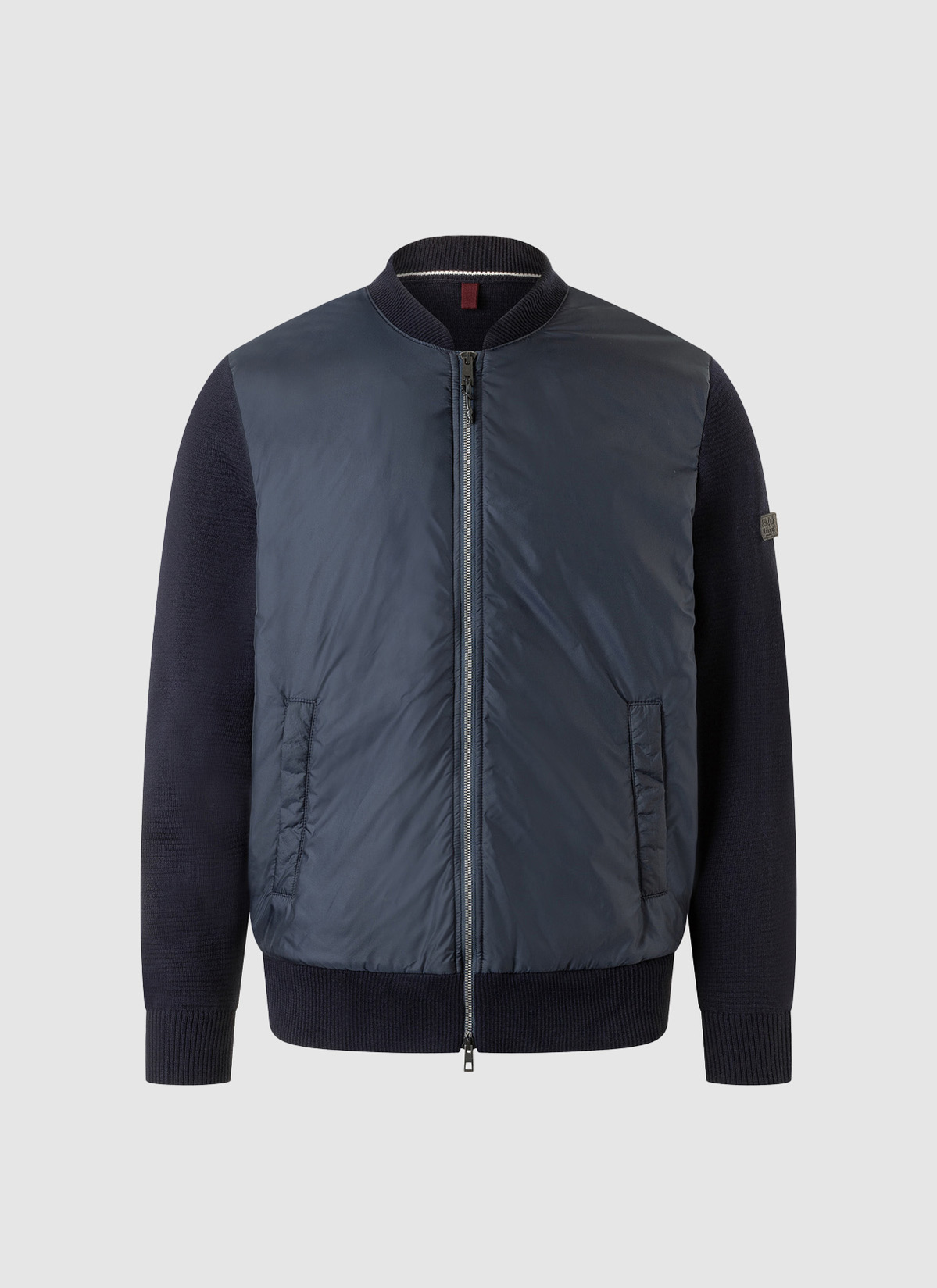 Die Jacke zeigt sich mit Reißverschluss sowie Rippendetails an Saum, Kragen und Ärmeln. Die Vorderseite aus mattem Nylon Chiffon verleiht der Weste einen eleganten, urbanen Look, während die Rückseite und Ärmel aus klassischer Schurwolle in Ottoman Strick für einen markanten Kontrast sorgt. Material: der Nylon Chiffon macht die Jacke besonders leicht und langlebig, während die Schurwolle für eine atmungsaktive, wärmende Rückseite sorgt. Styling-Tipp: kombiniert über einem schlichten T-Shirt für einen casual Look oder mit einem Hemd für einen eleganten Touch.