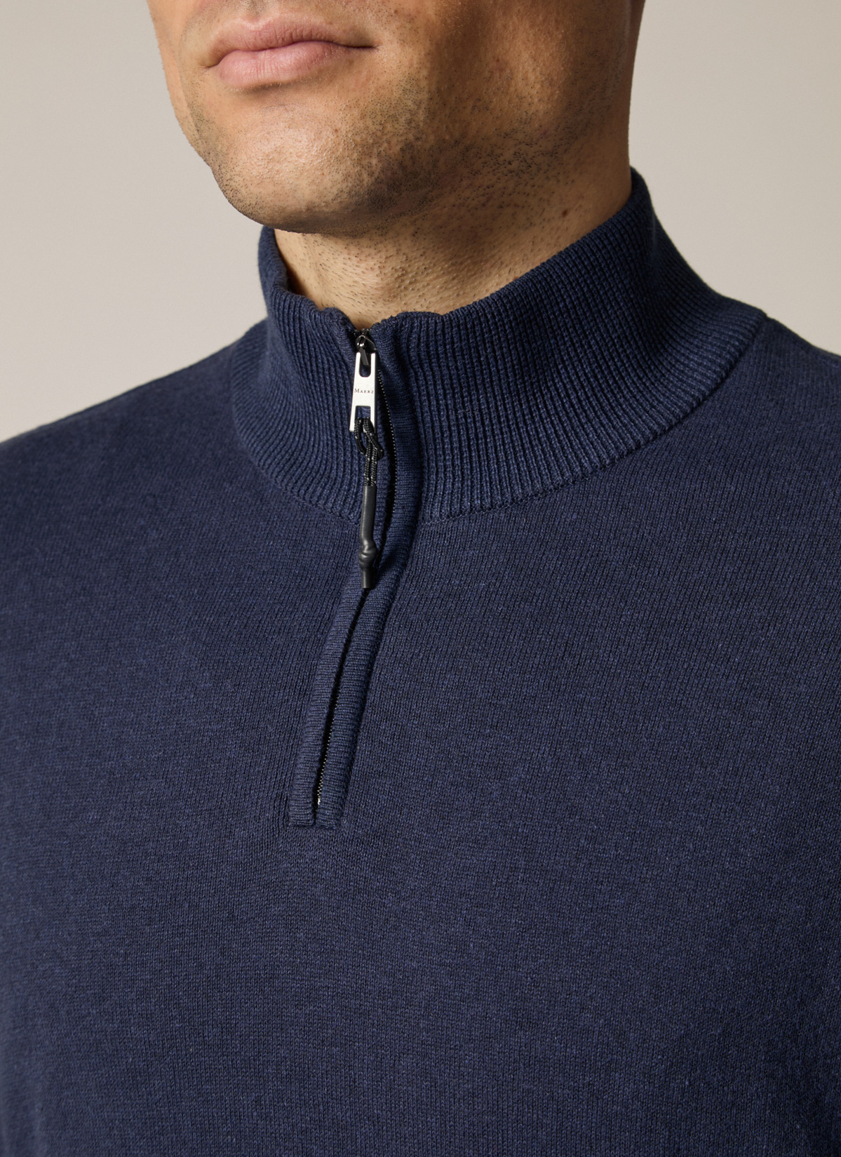 Der Pullover im Regular Fit zeigt sich mit Troyer Kragen und Rippendetails an Saum und Kragen. Der Pullover überzeugt durch seinen klassischen, sportlichen Look und den praktischen Reißverschluss am Kragen, der je nach Wunsch geöffnet oder geschlossen getragen werden kann. Material: gefertigt aus Baumwolle ist der Pullover besonders hautfreundlich und atmungsaktiv. Haptik: weich und leicht im Griff. Styling-Tipp: für einen Eleganten Look mit einer farblich passenden Stoffhose oder alltagstauglich zu Jeans.