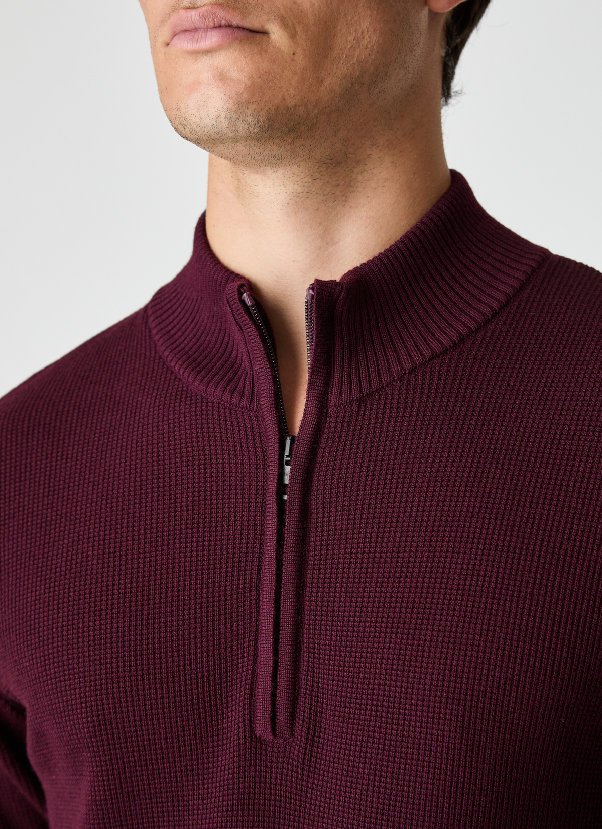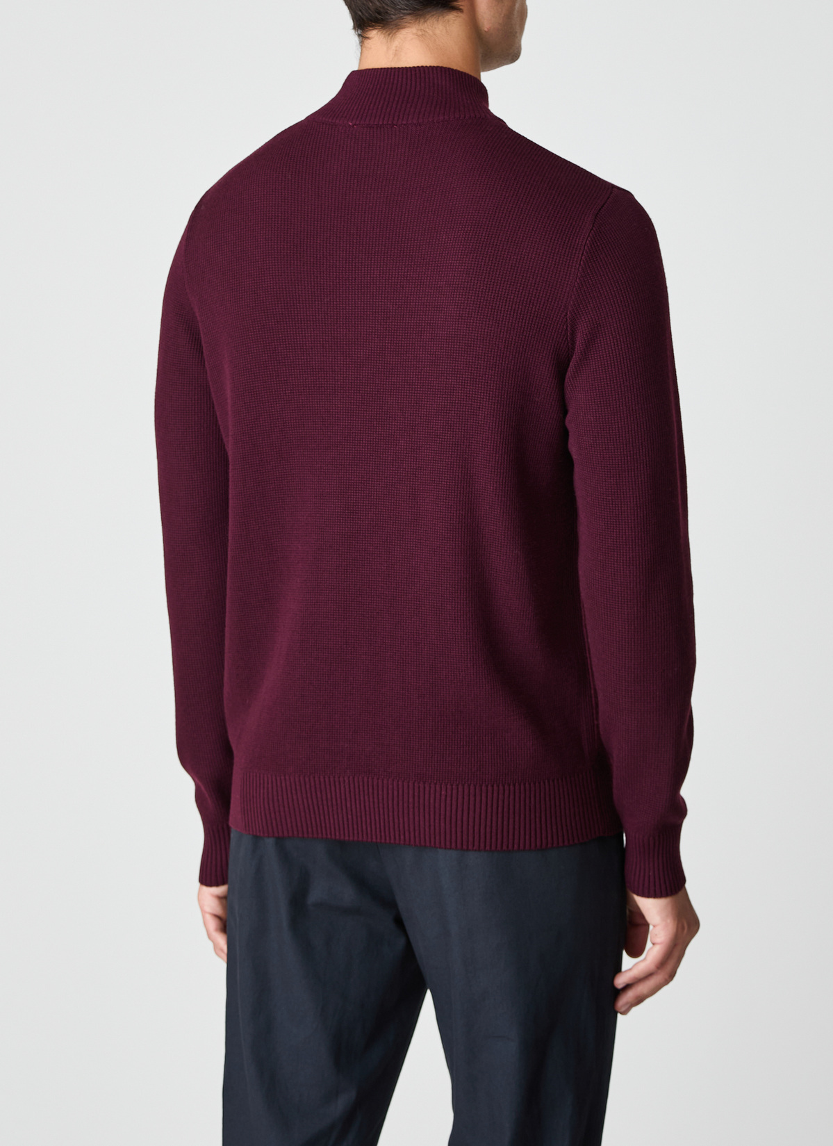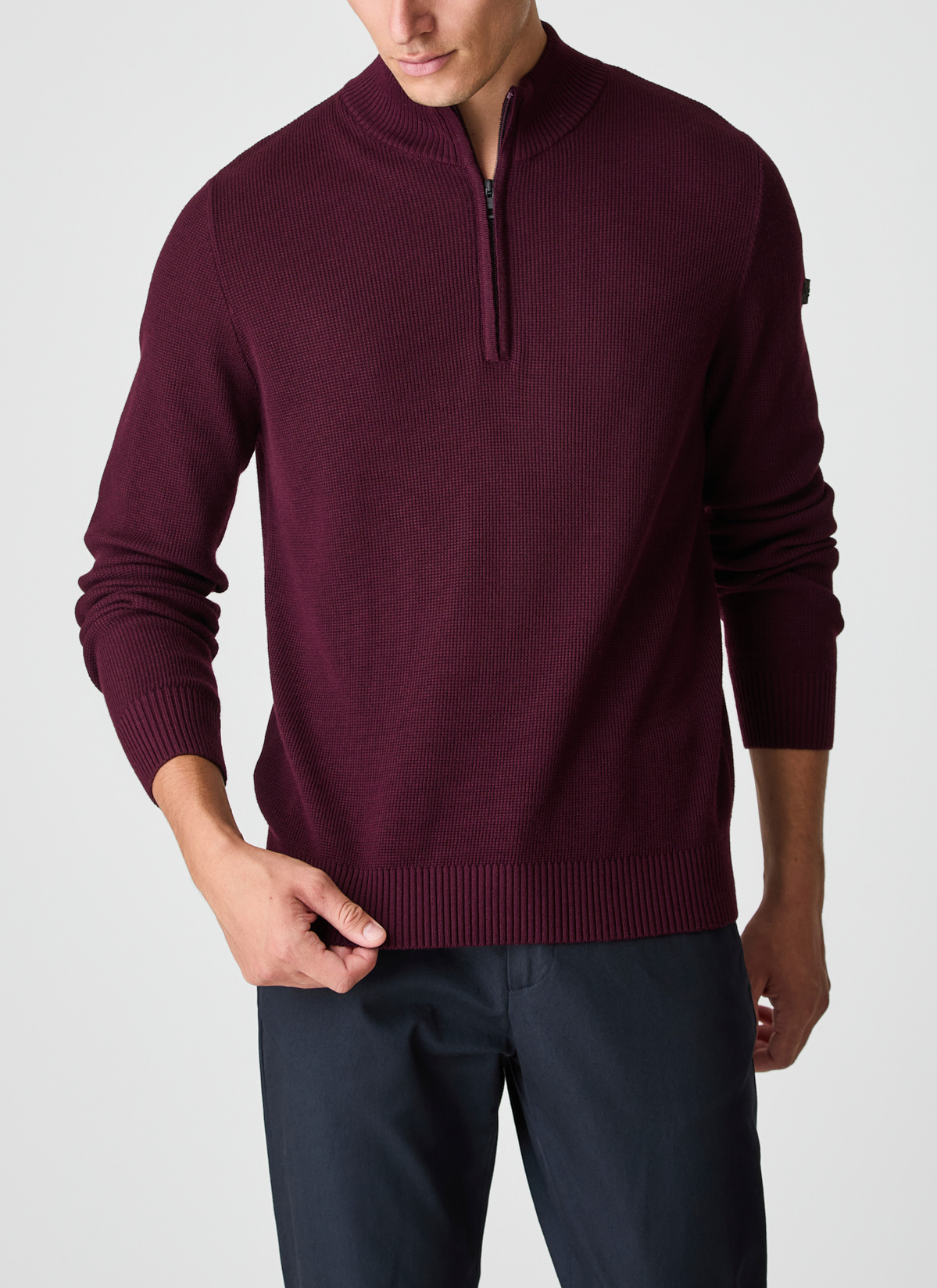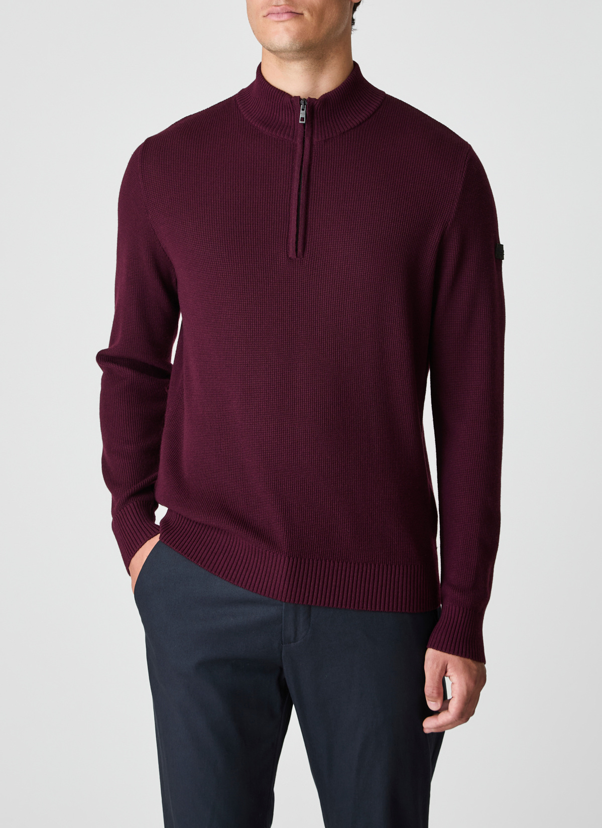 Dieser Herrenpullover überzeugt durch ein klares Design und eine innovative Materialkomposition. Der klassische Troyerkragen mit Reißverschluss und die gerade Passform im Regular Fit sorgen für eine zeitlose Silhouette mit angenehmem Sitz. Die Besonderheit liegt im doppellagigen Strickaufbau: Innen kommt hautfreundliche Baumwolle zum Einsatz, außen feine Merinowolle. So verbindet der Pullover angenehme Haptik mit natürlicher Temperaturregulierung und einem gepflegten Erscheinungsbild. Die Qualität ist weich, formstabil und ideal für den Alltag mit stilvollem Anspruch.