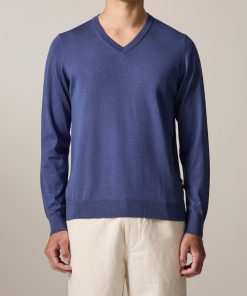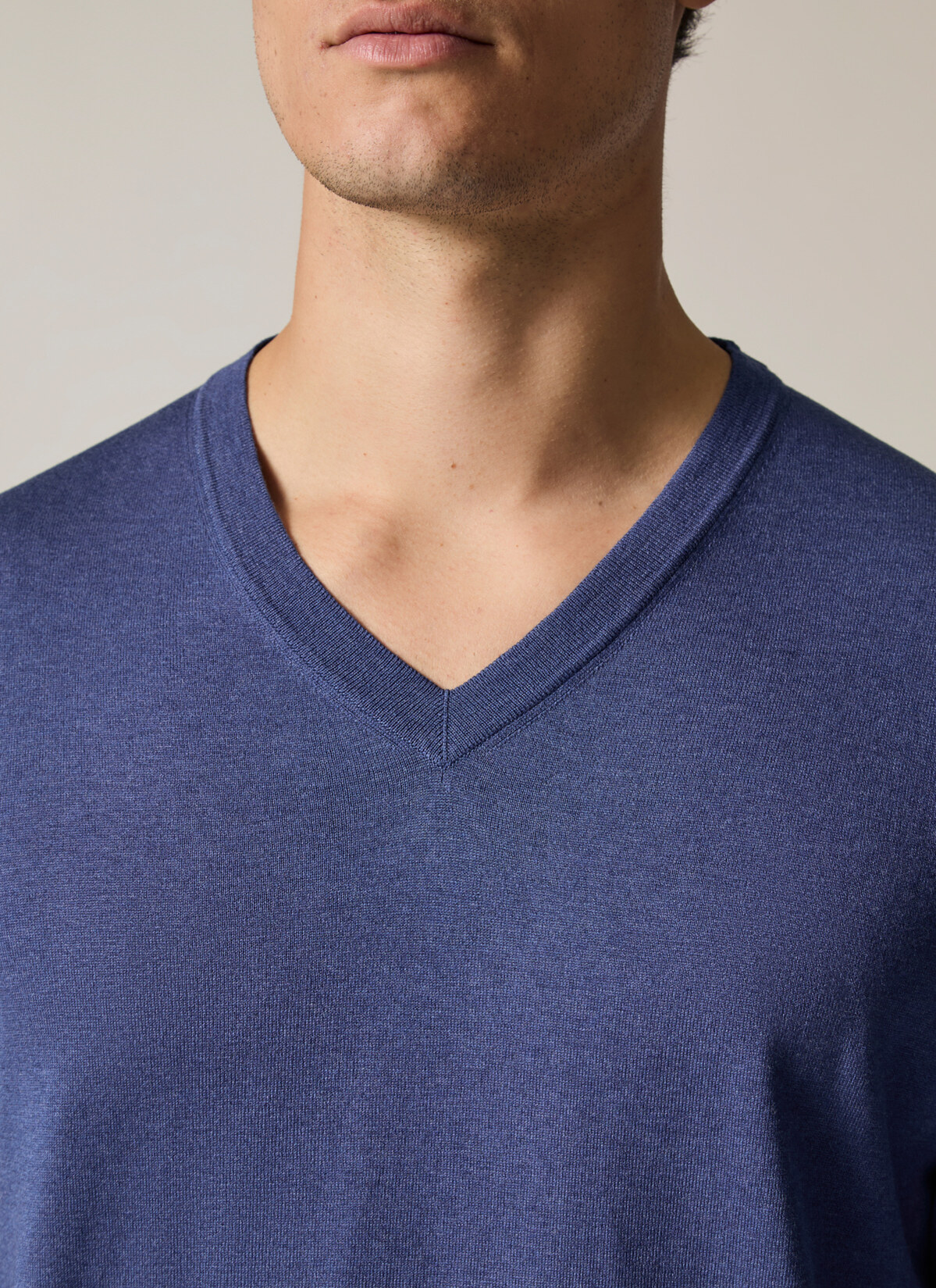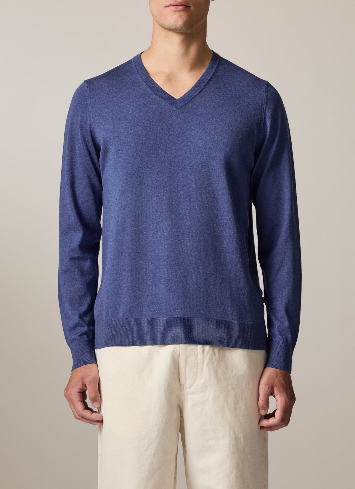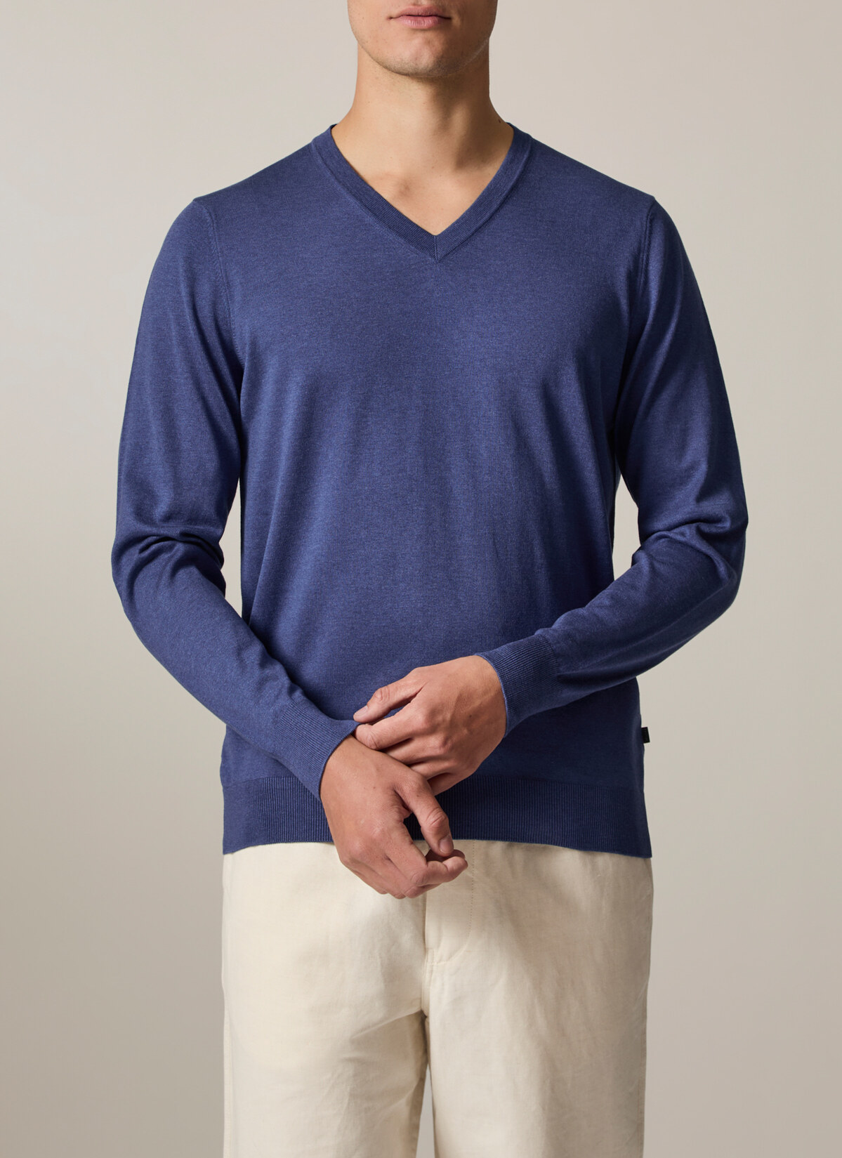 MAERZ Herren Kleidung V-ausschnitt Pullover|baumwoll-seide-mischung | Deep Sea