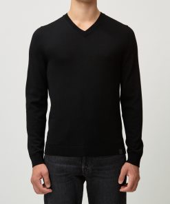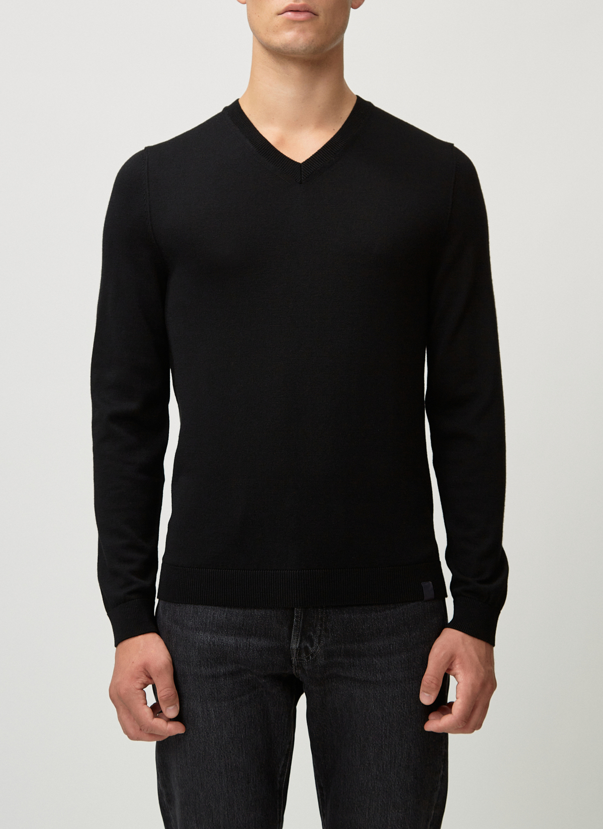 Sportiv und vielseitig: moderner Pullover mit V-Ausschnitt im Modern Fit. Besonders: die nachaußengedrehte Naht und die aufwendigen Strickdetails an Schulter und Kragen. Material: fein und weich, aber enorm strapazierfähig, mit einem festen und gleichzeitig elastischen Griff.Haptik: cleanes klassisches Maschenbild mit weichem Wollgriff. Hochwertige Verarbeitung mit handgekettelten Nähten und elastischen Bündchen.