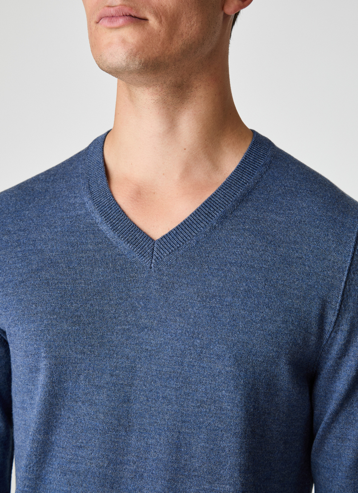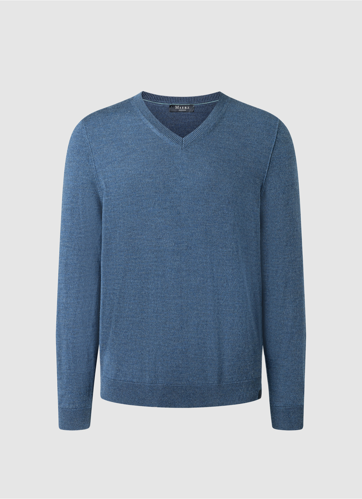 MAERZ Herren Kleidung V-pullover|100% Merinowolle | Nimes Blue