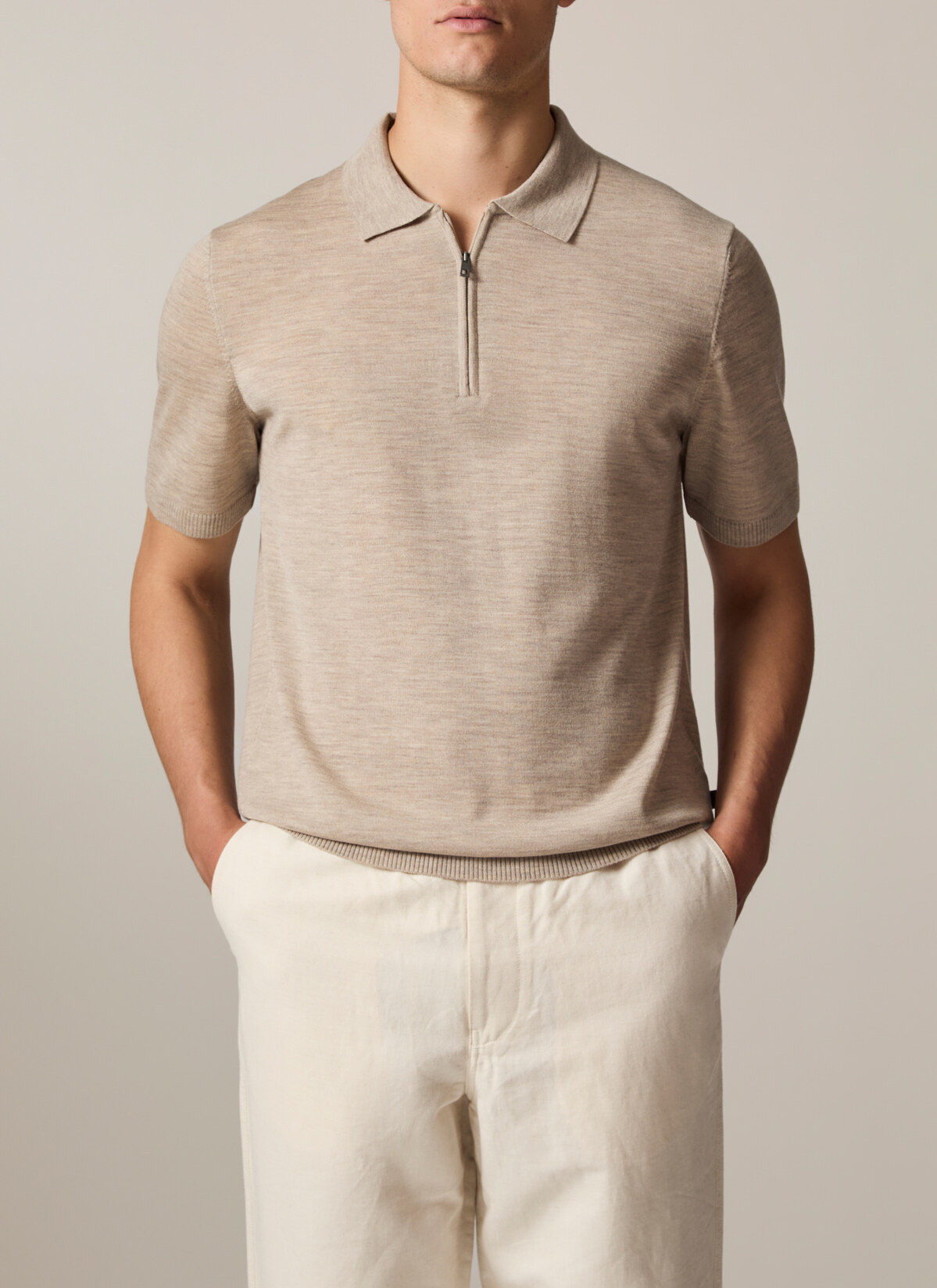 MAERZ Herren Kleidung Zipper Polohemd|100% Merinowolle | Beach
