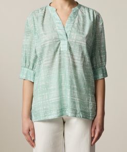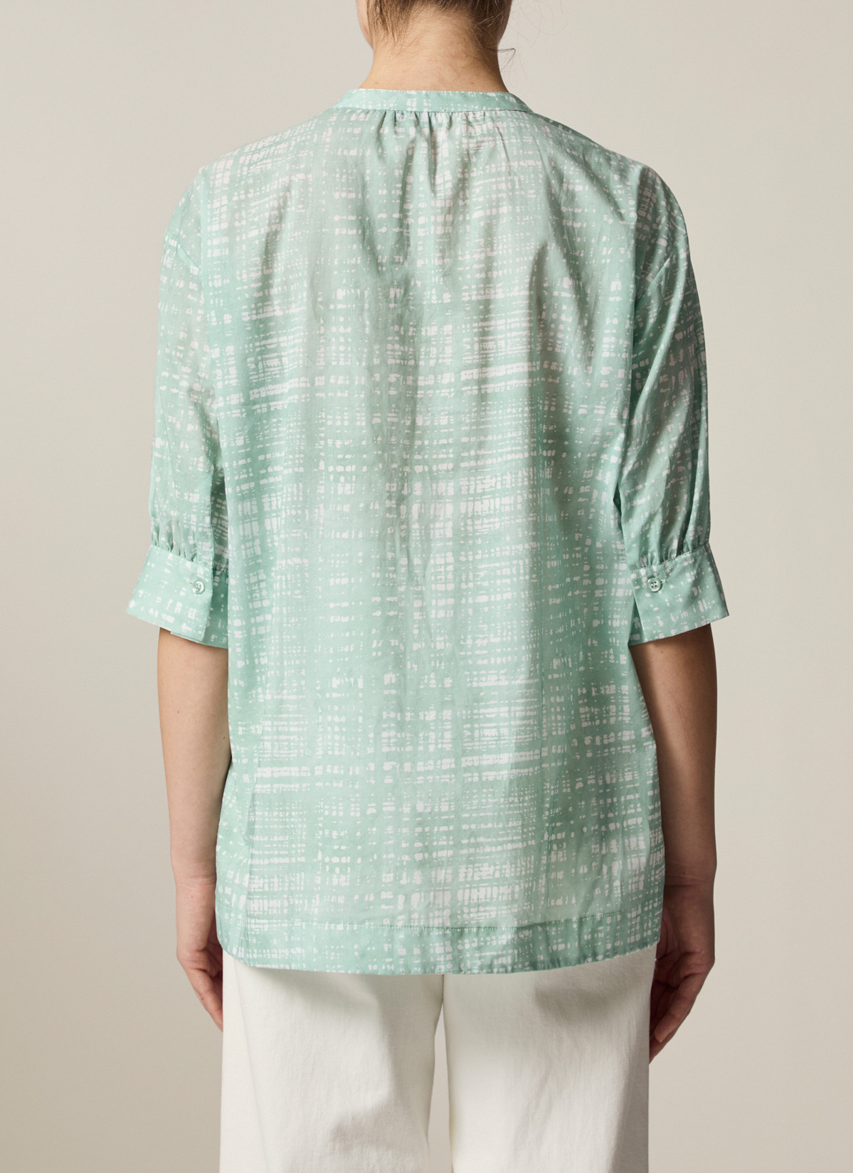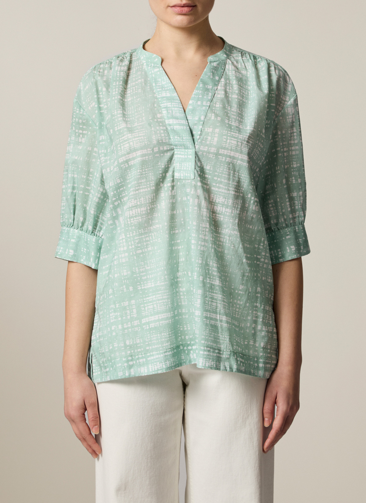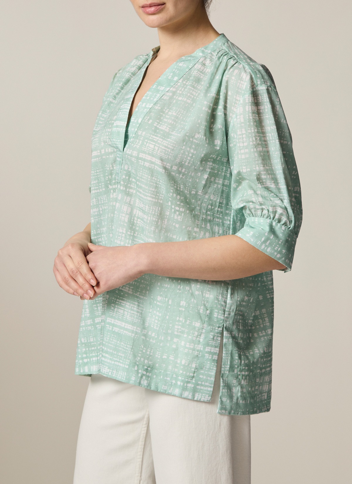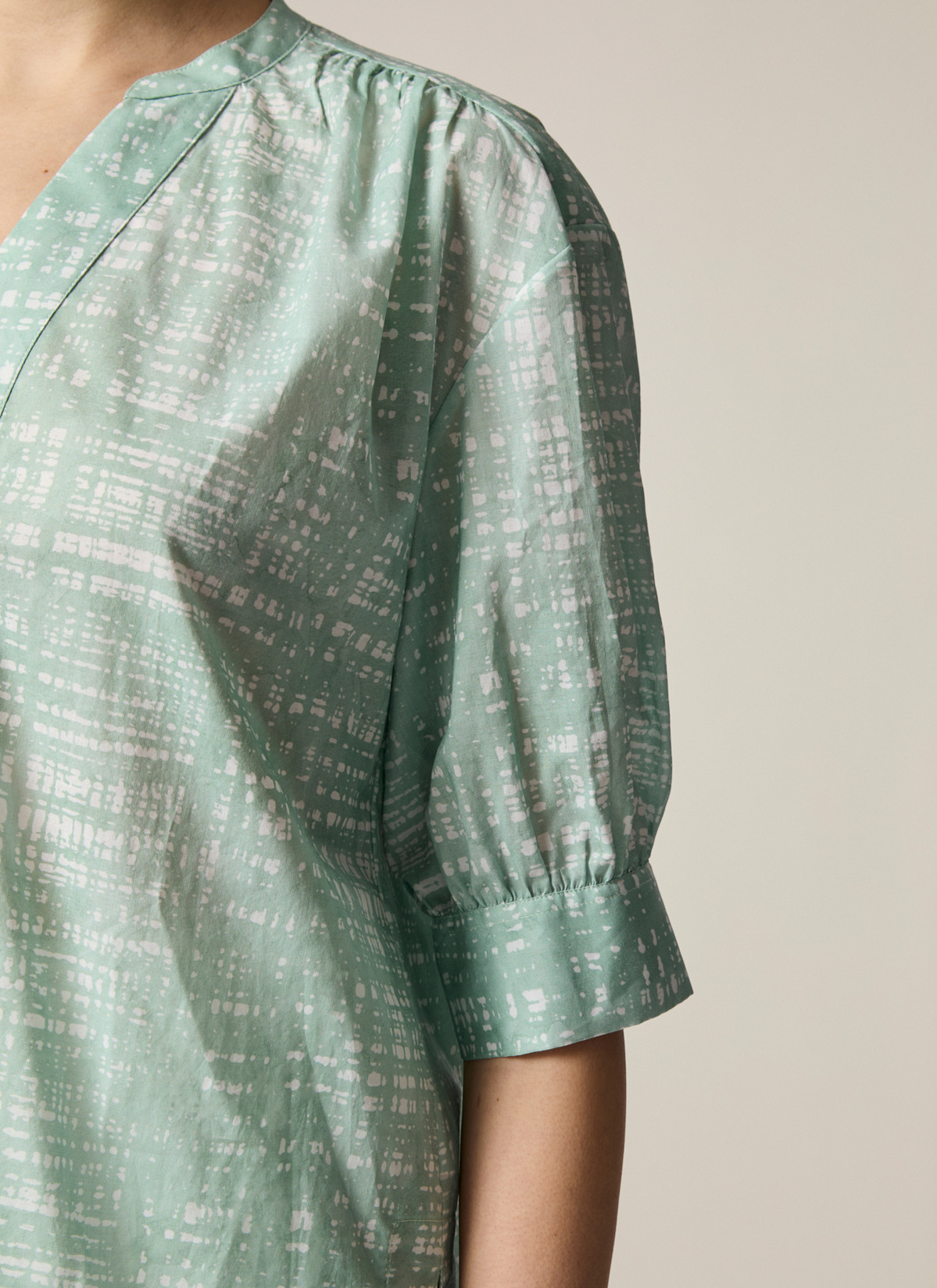 Die Bluse im Modern Fit zeigt sich mit Statement Muster und V-Ausschnitt. Die voluminös geschnittenen Ärmel mit Manschette verleihen der Bluse einen femininen Look. Material: gefertigt aus Baumwolle ist die Bluse wunderbar atmungsaktiv und pflegeleicht. Haptik: glatt und kühl im Griff. Das Modell ist die perfekte moderne Variante zur klassischen Office-Bluse!