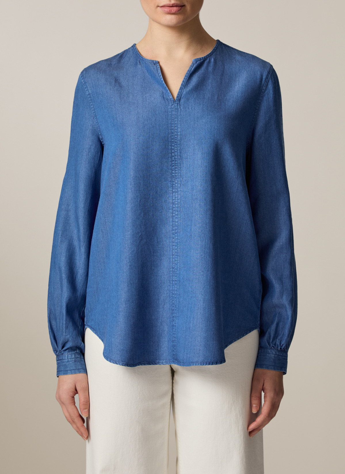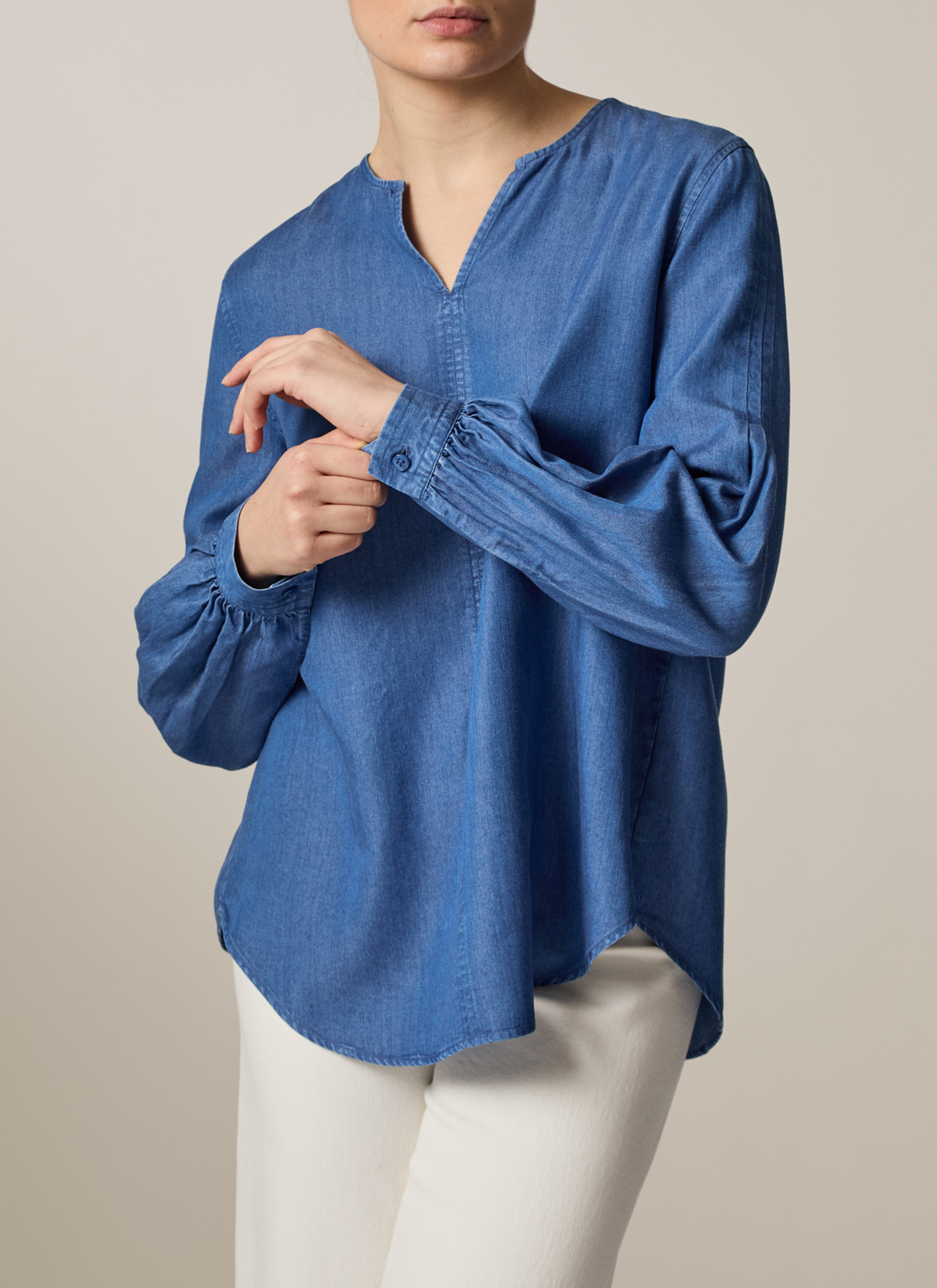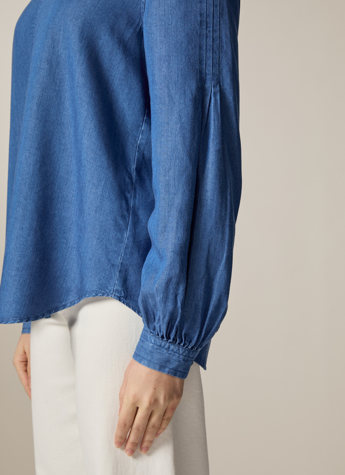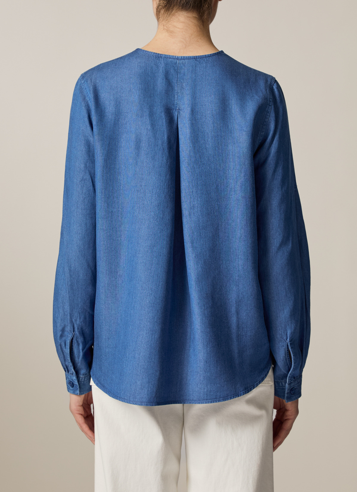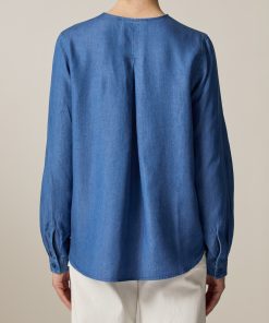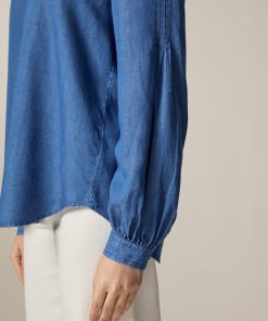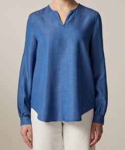 Die Bluse im Modern Fit zeigt sich in Denim Optik mit Naht Detail auf der Vorderseite. Die elegante Kellerfalte auf der Rückseite sowie die leicht voluminösen Ärmel verleihen der Bluse ihren femininen Look. Material: zu 100% aus Lyocell gefertigt ist die Bluse besonders hautfreundlich und Temperatur ausgleichend. Haptik: weich und leicht im Griff. Styling-Tipp: kombiniert im Set mit der passenden Hose (Art. Nr.: 110900) wirkt der Look besonders stimmig.