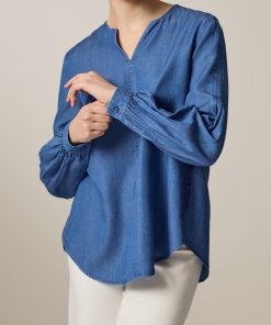 Die Bluse im Modern Fit zeigt sich in Denim Optik mit Naht Detail auf der Vorderseite. Die elegante Kellerfalte auf der Rückseite sowie die leicht voluminösen Ärmel verleihen der Bluse ihren femininen Look. Material: zu 100% aus Lyocell gefertigt ist die Bluse besonders hautfreundlich und Temperatur ausgleichend. Haptik: weich und leicht im Griff. Styling-Tipp: kombiniert im Set mit der passenden Hose (Art. Nr.: 110900) wirkt der Look besonders stimmig.