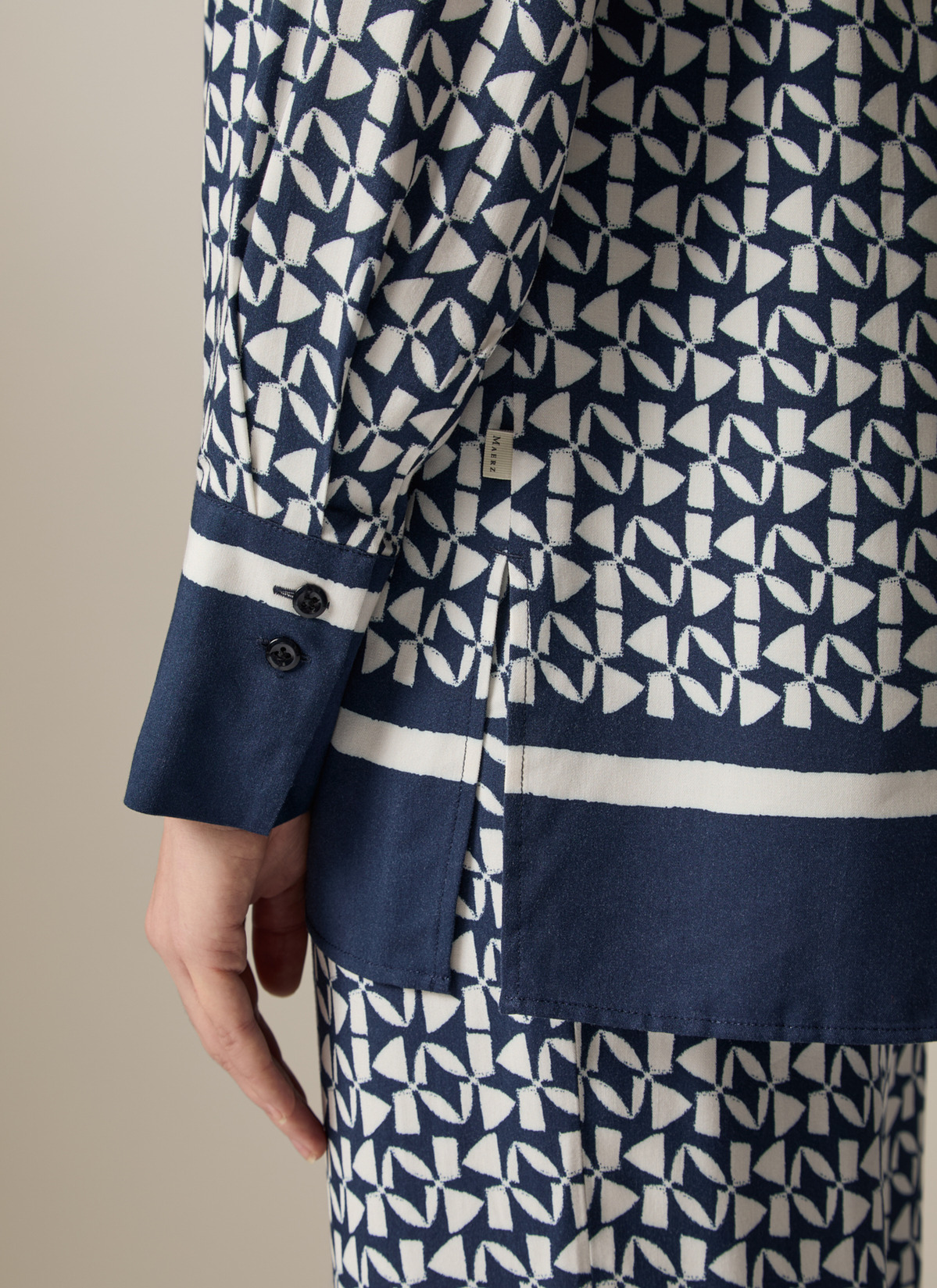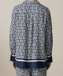 Die Twill Bluse im Straight Fit zeigt sich mit farbigem Statement Bund und Manschetten. Das aufgedruckte Muster macht die Bluse zu einem absoluten Einzelstück. Material: zu 100% aus Viskose gefertigt ist die Bluse besonders hautfreundlich und anschmiegsam. Haptik: glatt und kühl im Griff. Styling-Tipp: kombiniert im Set mit der passenden Hose (Art. Nr.: 156401) wirkt der Look besonders elegant.