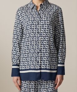 Die Twill Bluse im Straight Fit zeigt sich mit farbigem Statement Bund und Manschetten. Das aufgedruckte Muster macht die Bluse zu einem absoluten Einzelstück. Material: zu 100% aus Viskose gefertigt ist die Bluse besonders hautfreundlich und anschmiegsam. Haptik: glatt und kühl im Griff. Styling-Tipp: kombiniert im Set mit der passenden Hose (Art. Nr.: 156401) wirkt der Look besonders elegant.