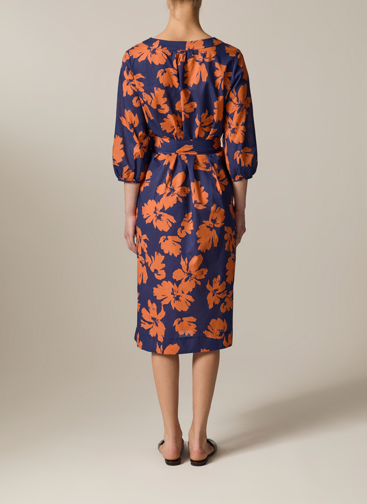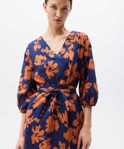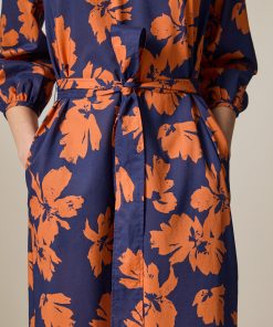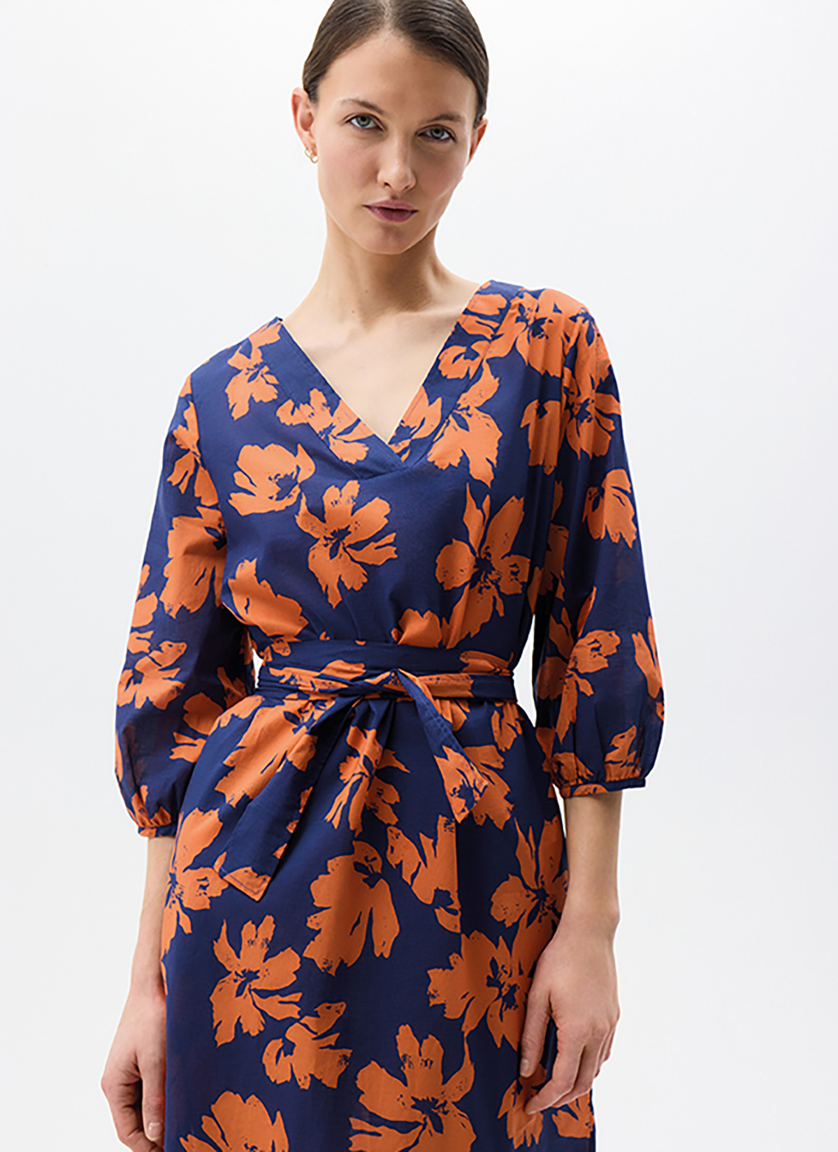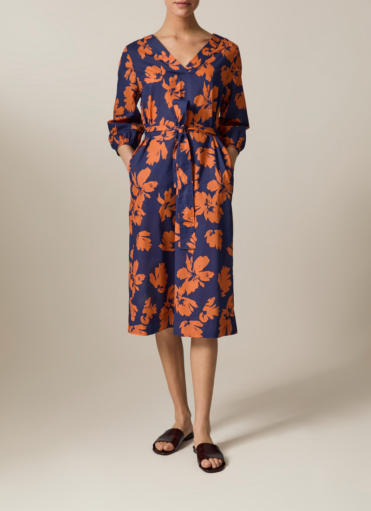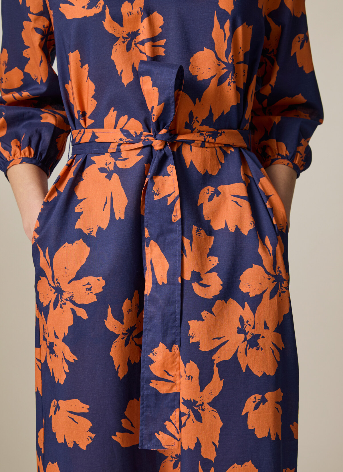 Das Kleid im Modern Fit zeigt sich mit V-Ausschnitt, seitlichen Eingriffstaschen und dezent voluminösen Ärmeln. Der Bindegürtel verleiht dem Kleid eine feminine Silhouette. Material: gefertigt aus 100% Baumwoll-Voile ist das Kleid besonders hautfreundlich und pflegeleicht. Voile ist ein leichtes, atmungsaktives und weiches Gewebe, das durch seine zarte Transparenz und den angenehmen Tragekomfort ideal für warme Temperaturen ist.