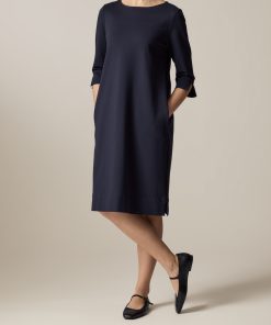 Das Kleid im Classic Fit zeigt sich in elegantem A-Linien Schnitt mit dreiviertel Ärmeln. Die Kellerfalte auf der Rückseite verleiht dem Kleid das besondere Etwas und sorgt für einen femininen Fall. Material: gefertigt aus Punta di Roma Jersey ist das Kleid besonders glatt und formstabil. Gleichzeitig bleibt es angenehm elastisch. Styling-Tipp: passend im Set kombiniert mit unserer Jacke (Art. 127900).