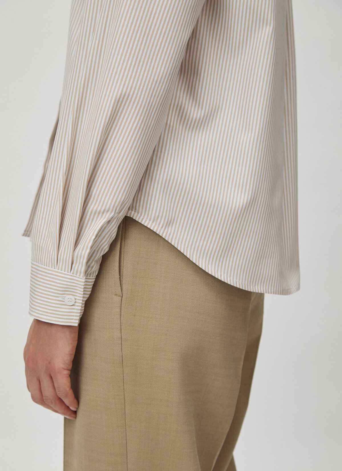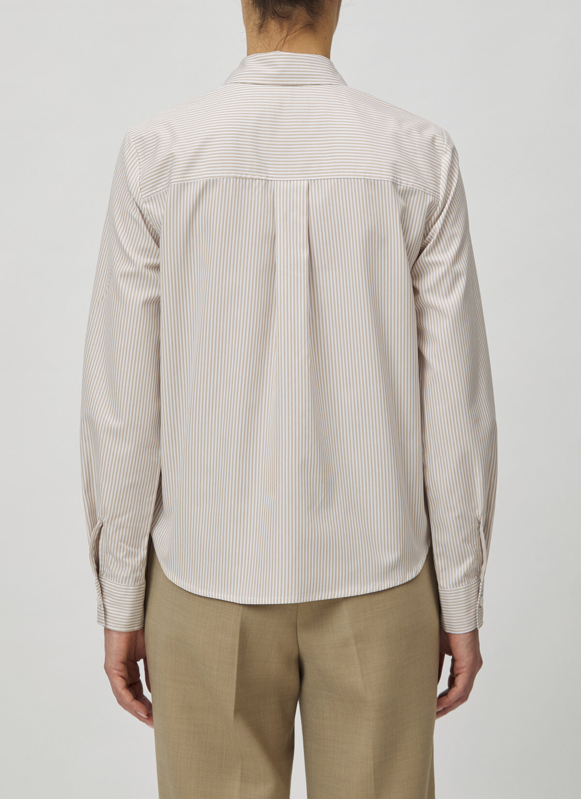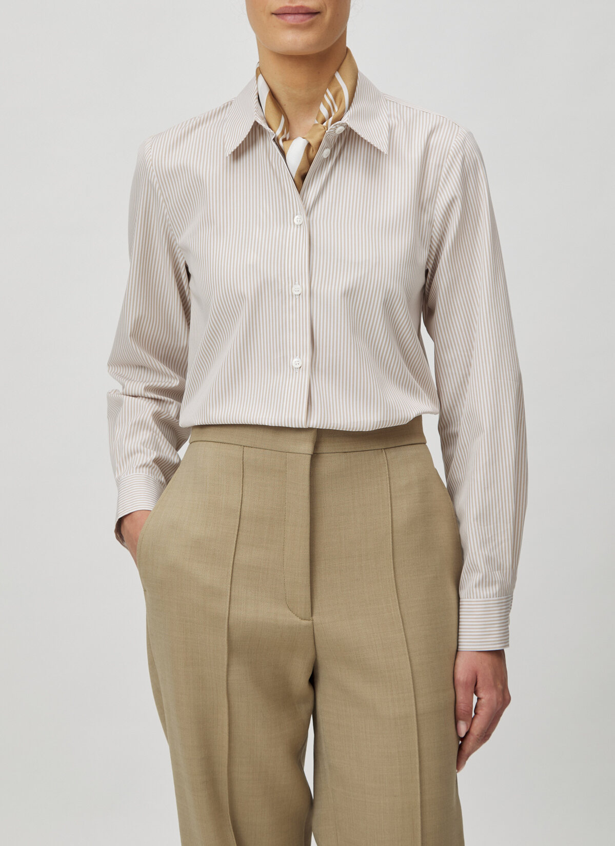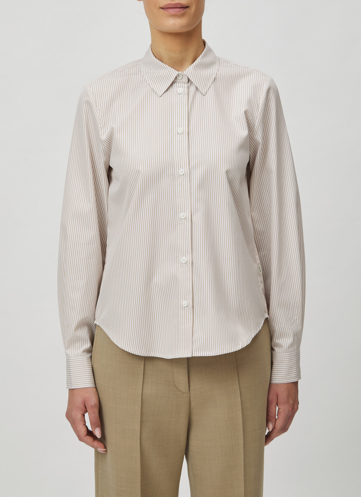 Der perfekte Office Begleiter – Die Streifenbluse kommt im Regular Fit mit durchgehender Knopfleiste. Die Quetschfalte auf der Rückseite sowie die Falten an den Ärmeln verleihen der Bluse einen femininen Touch und sind besondere Hingucker. Material: die hochwertige stretch Popeline garantiert hierbei hohen Tragekomfort, ist knitterarm und leicht zu bügeln. Styling-Tipp: Die Bluse eignet sich aufgrund ihrer schmalen Passform hervorragend als Unterziehbluse zu Pullovern.