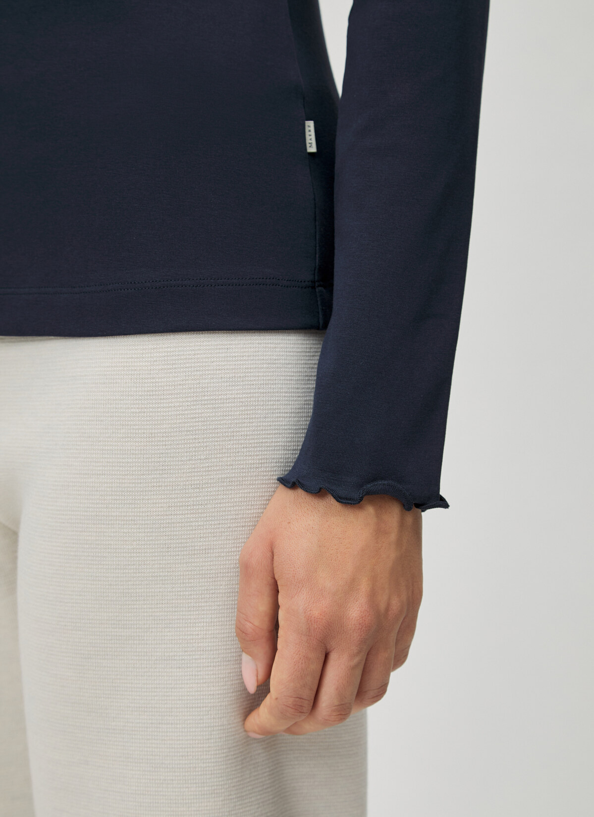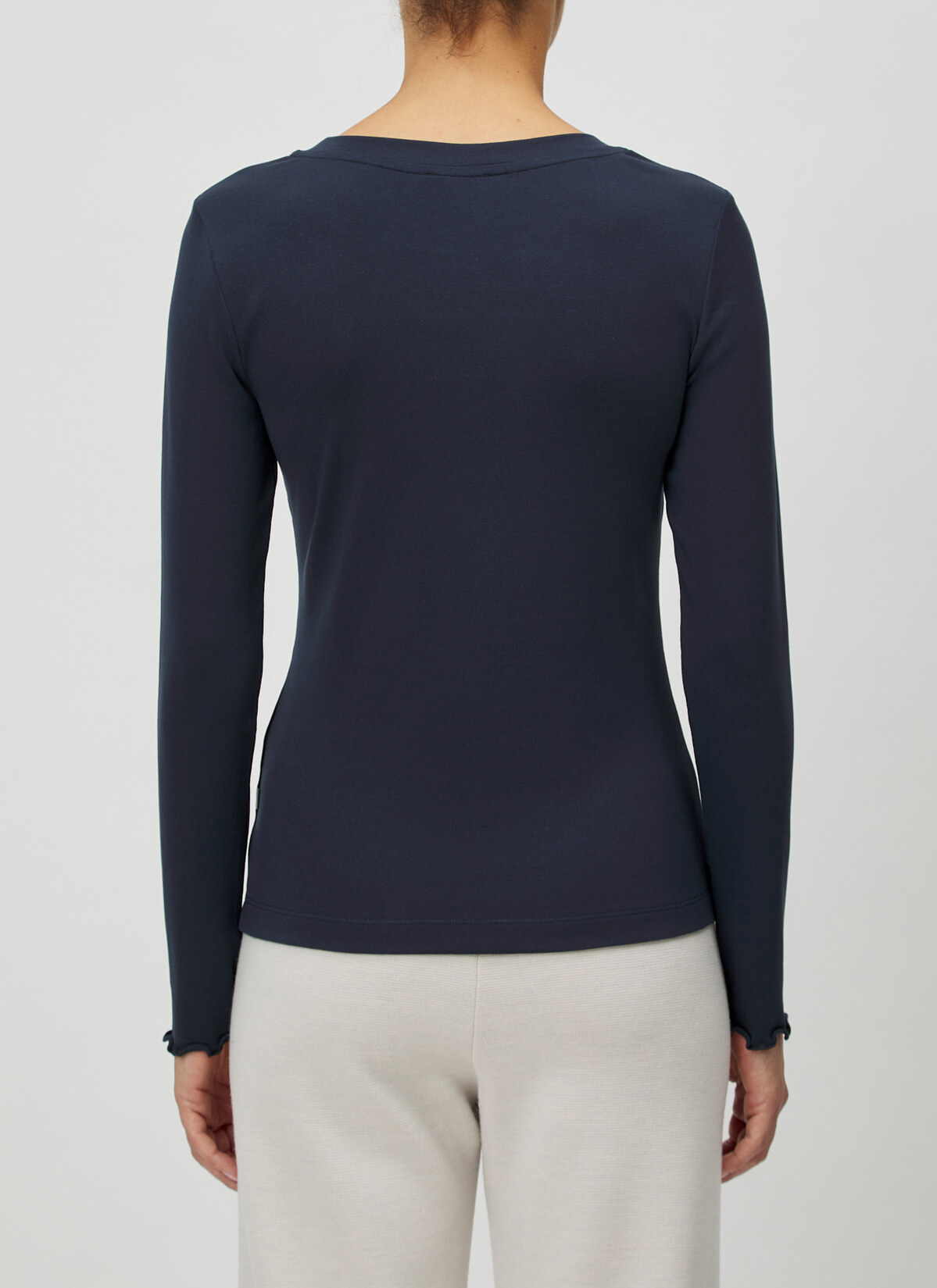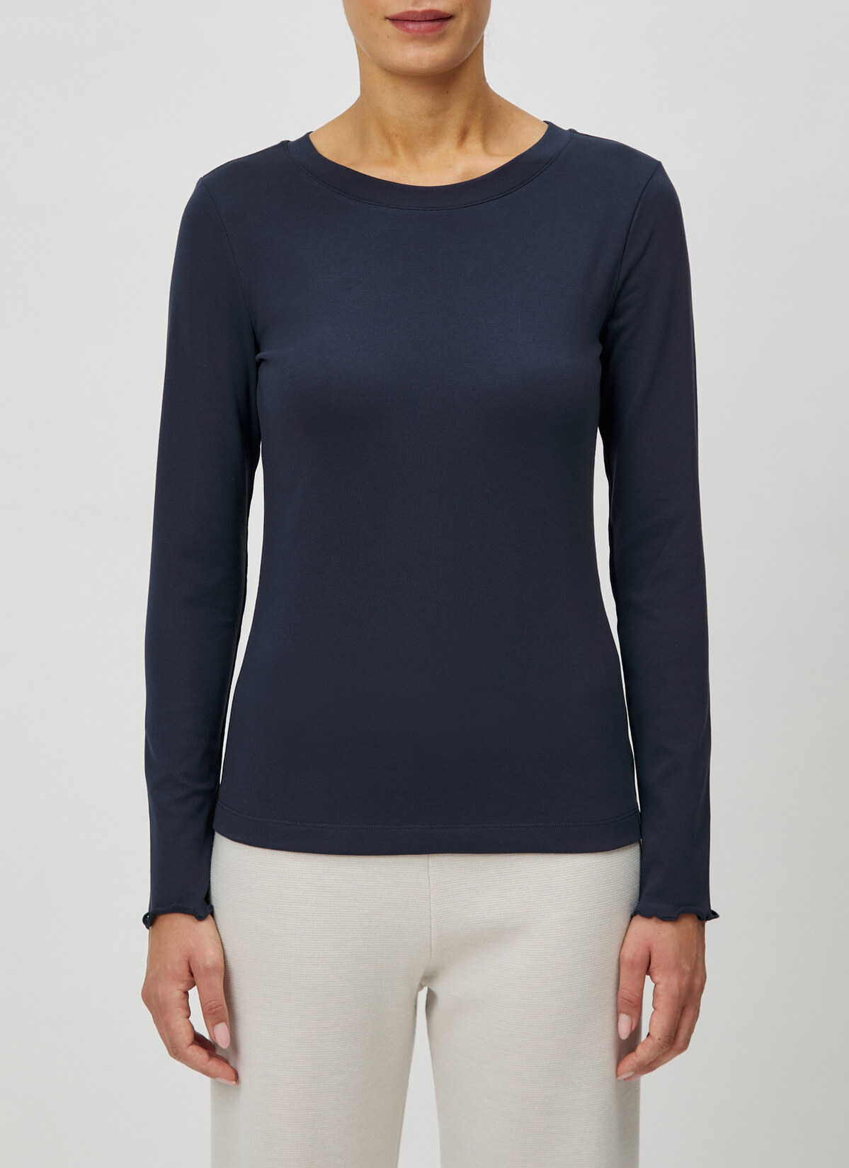 Lieblings-Produkt: Einfarbiges Longsleeve mit Rundhalsausschnitt und Muschelsaum am Ärmel. Die Materialmischung aus Baumwolle und Elasthan macht es besonders bequem und pflegeleicht. Das Shirt überzeugt dank seiner hochwertigen Verarbeitung. Bleibt auch nach vielen Wäschen in seiner Form. Der Fit: figurbetont, feminin & bequem.