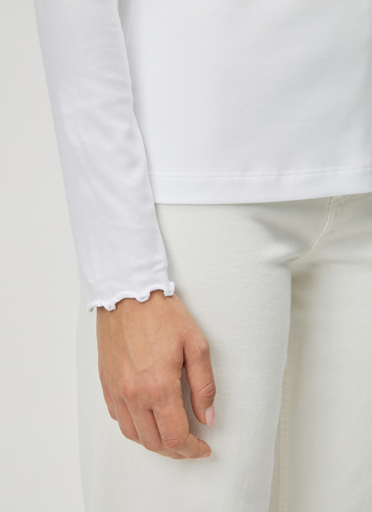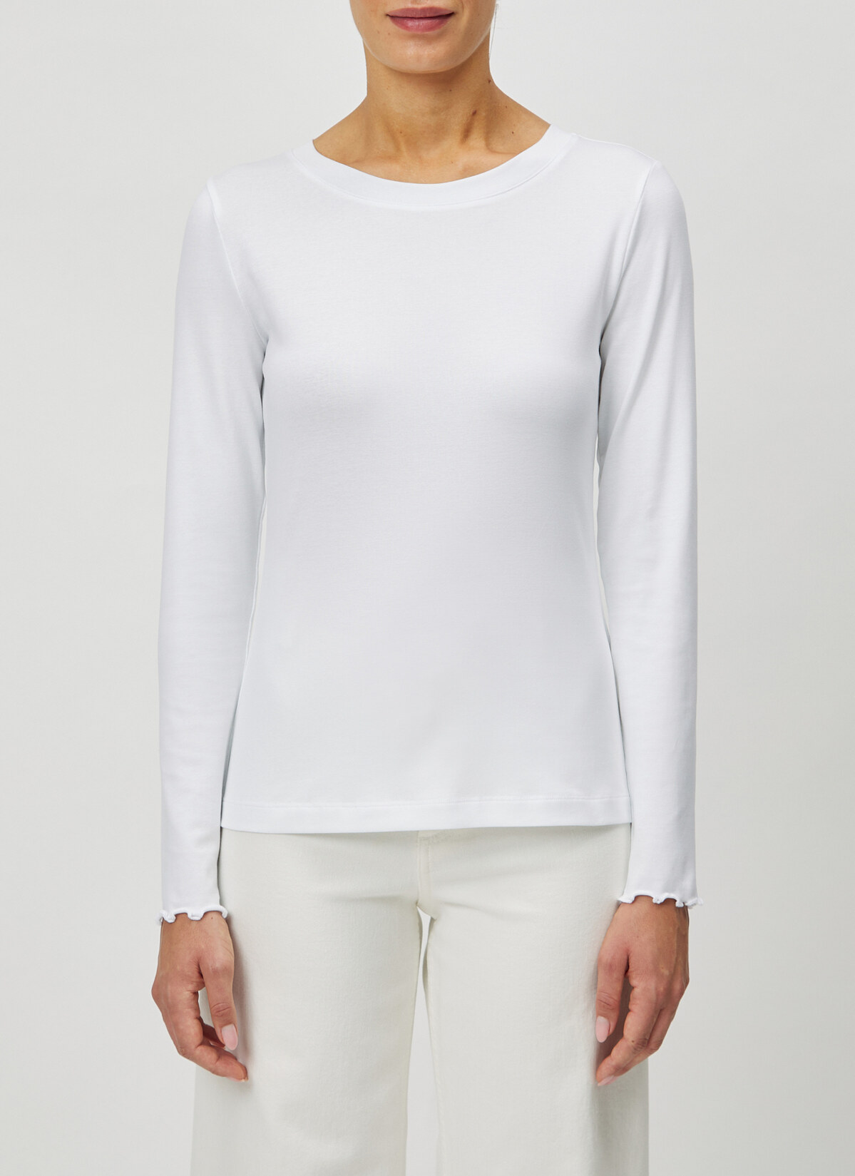 Lieblings-Produkt: Einfarbiges Longsleeve mit Rundhalsausschnitt und Muschelsaum am Ärmel. Die Materialmischung aus Baumwolle und Elasthan macht es besonders bequem und pflegeleicht. Das Shirt überzeugt dank seiner hochwertigen Verarbeitung. Bleibt auch nach vielen Wäschen in seiner Form. Der Fit: figurbetont, feminin & bequem.
