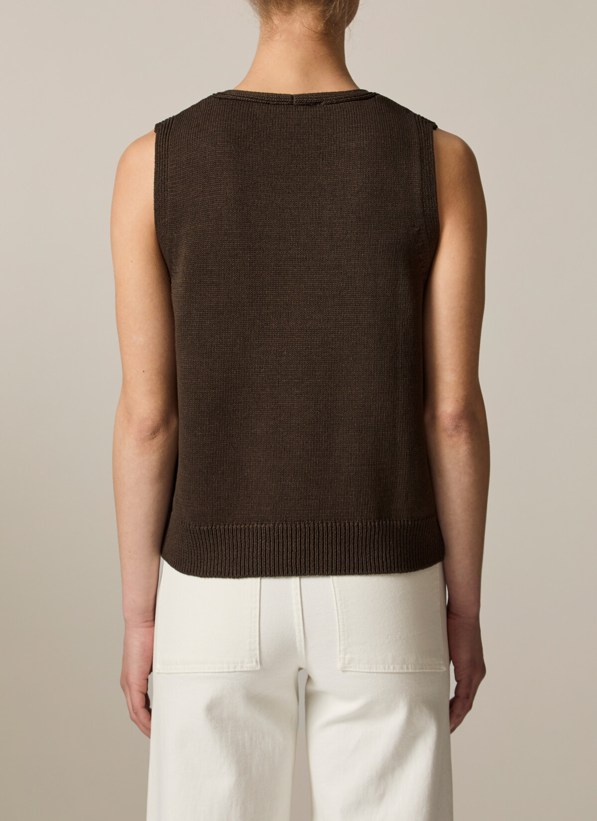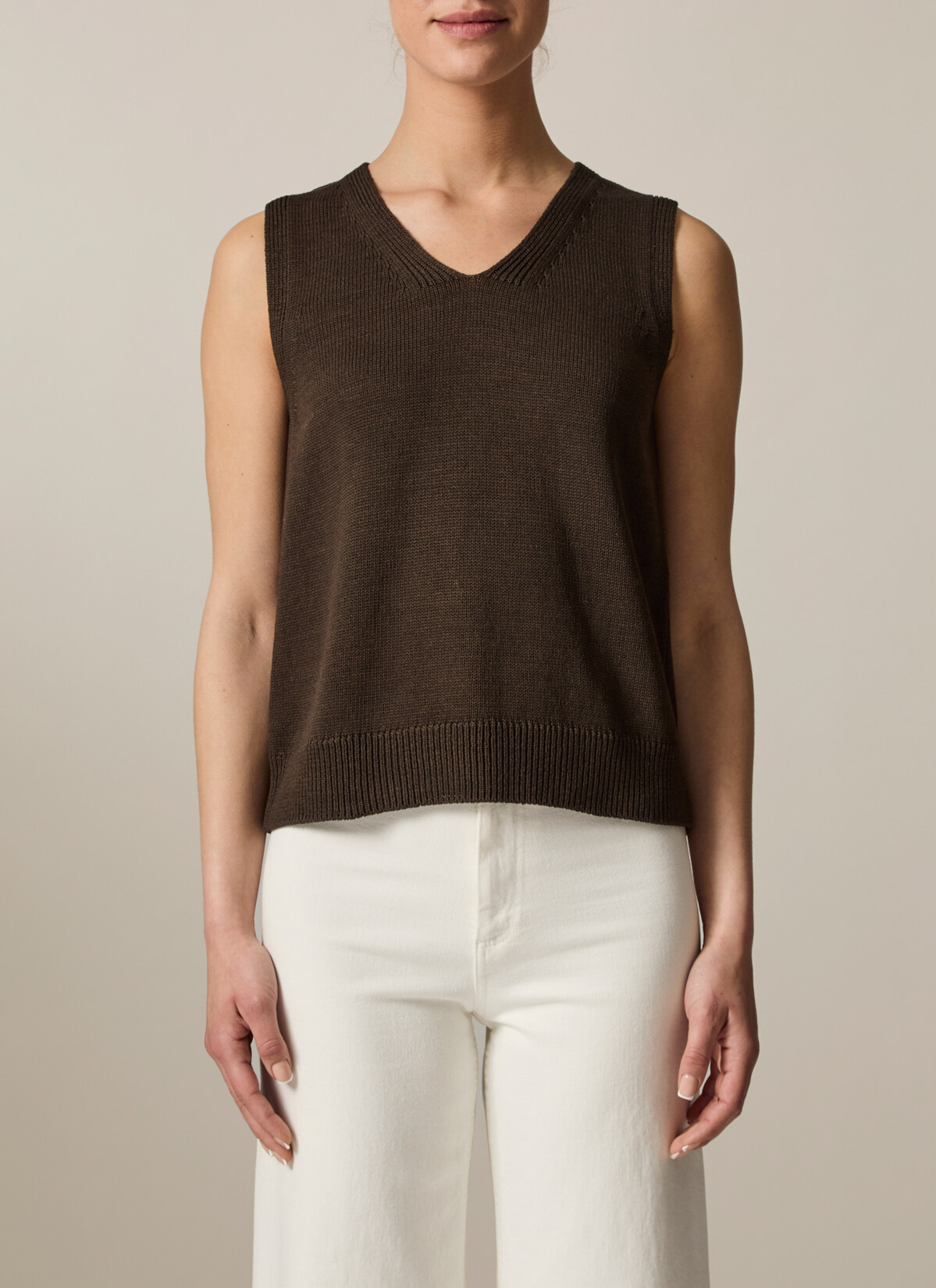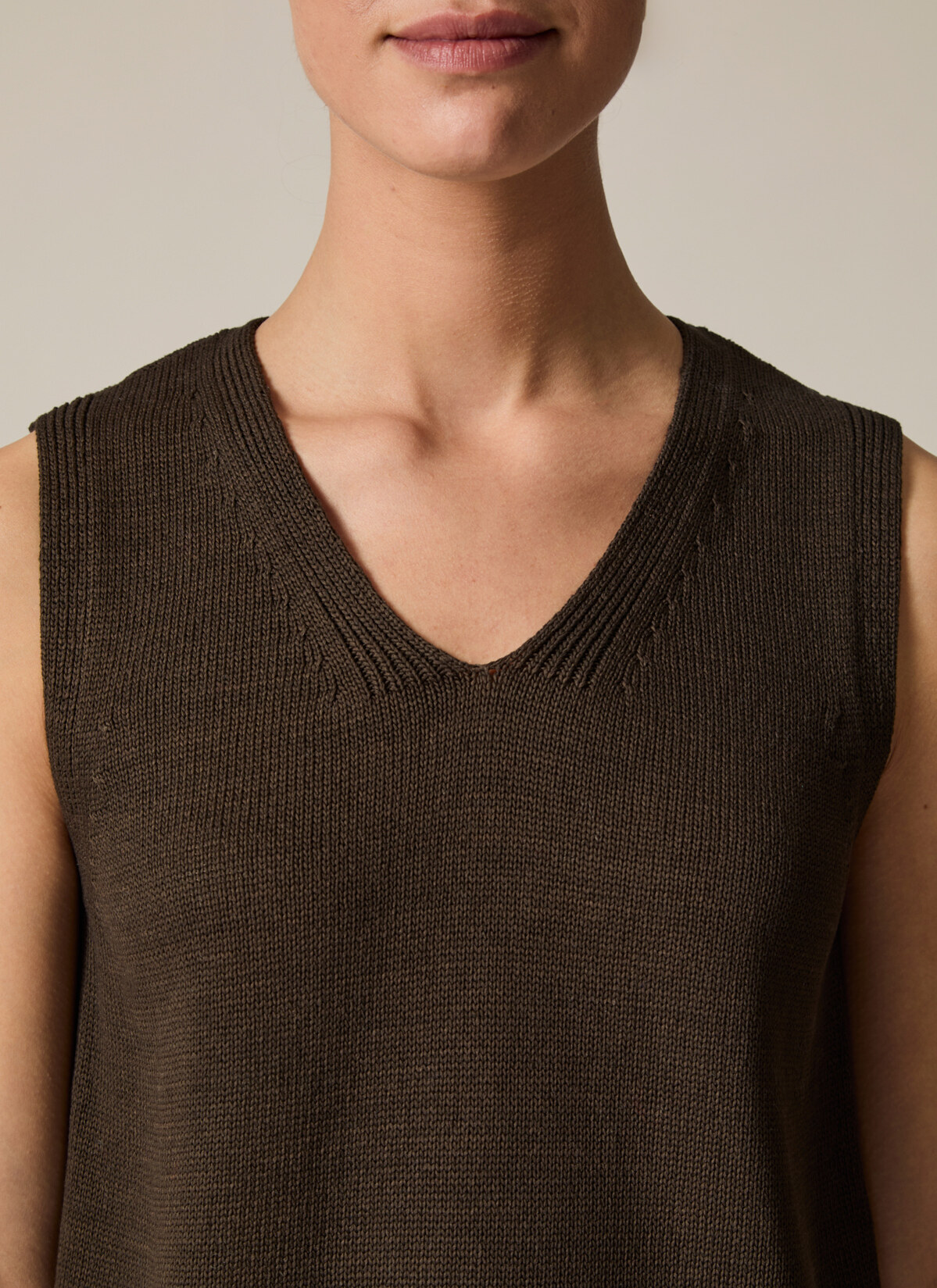 Der Pullunder zeigt sich im Regular Fit mit Statement Struktur am V-Ausschnitt. Material: gefertigt aus 100% Bio-Baumwolle ist der Pullover hautfreundlich und kühlend. Haptik: weich und kompakt im Griff. Styling-Tipp: kombiniert mit einer Jeans für einen entspannten Alltagslook.