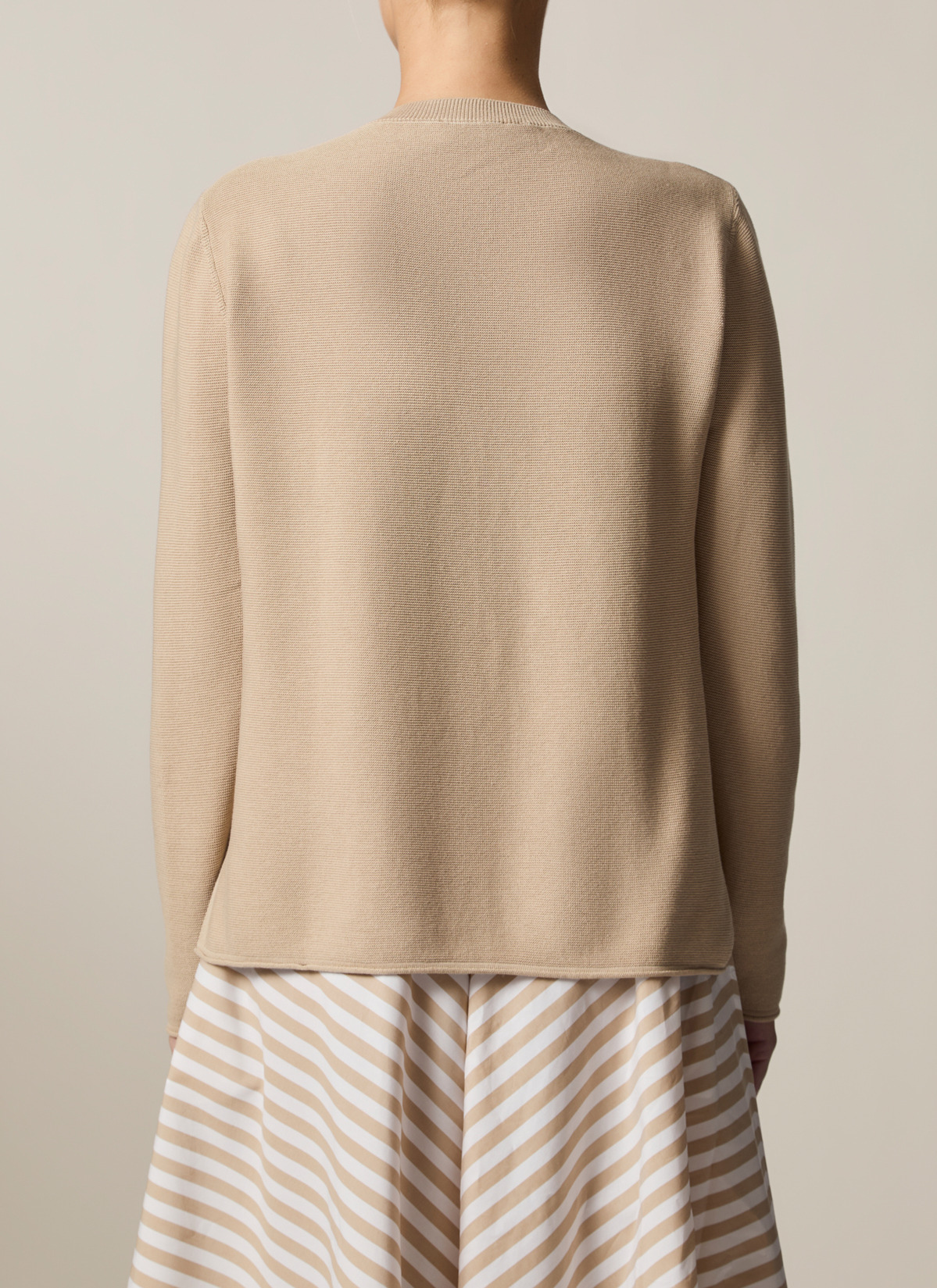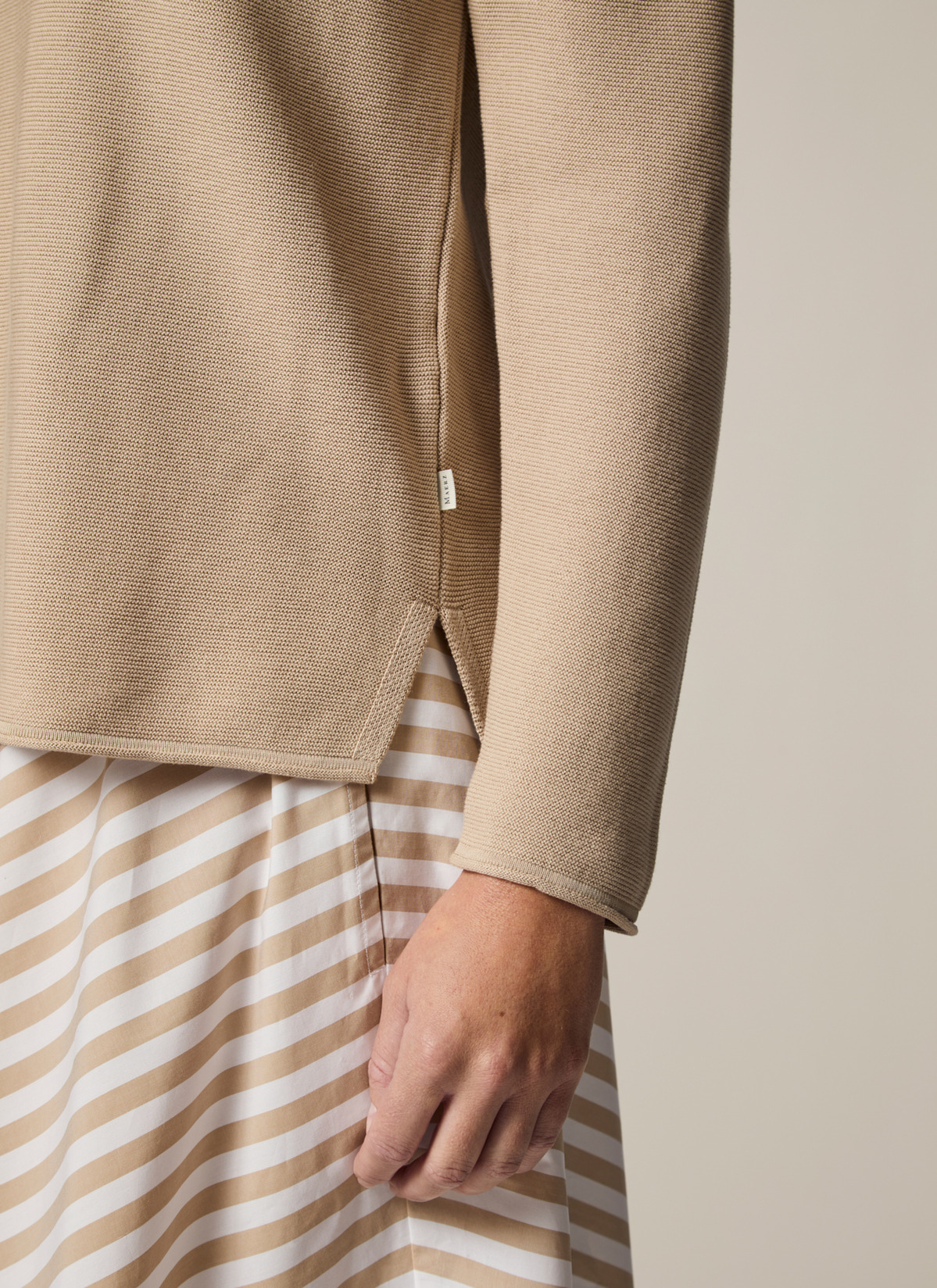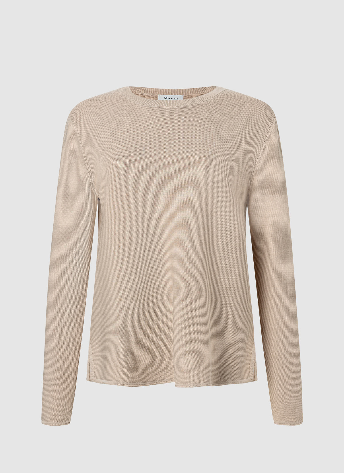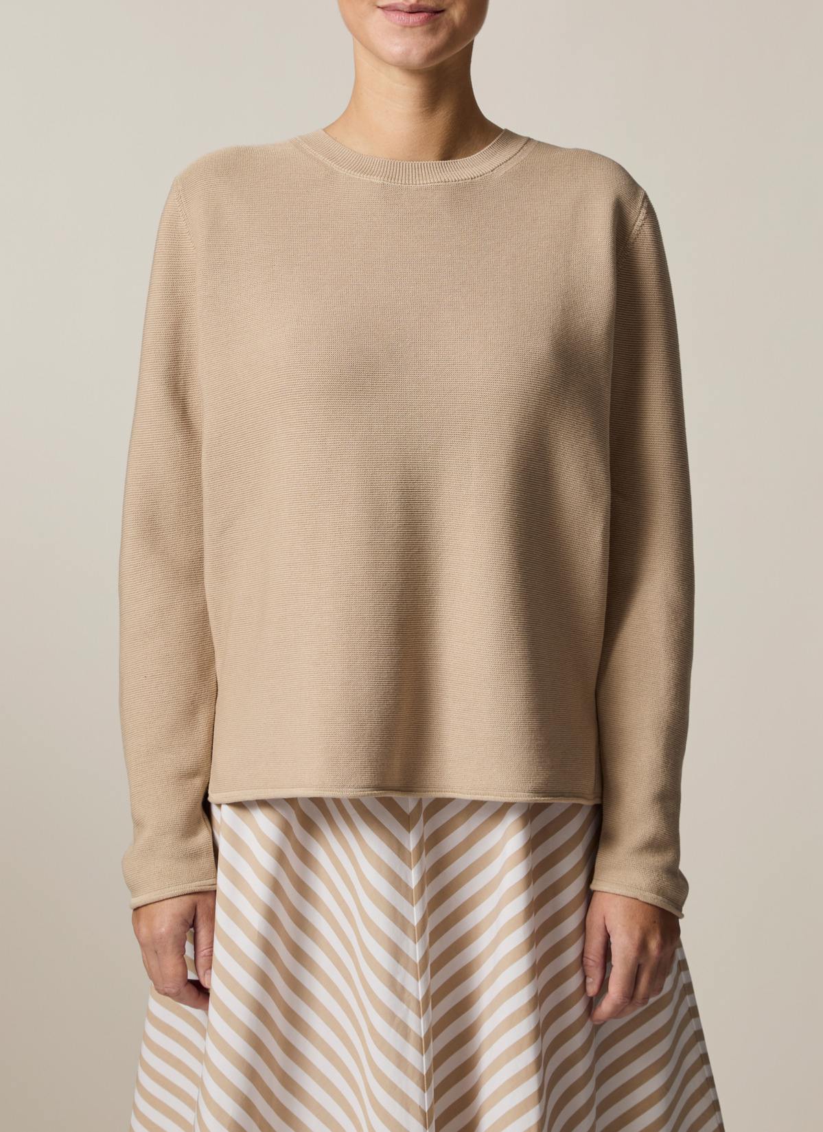 Der Rundhalspullover zeigt sich mit Rippen Halsbündchen und Rollkanten an Ärmeln und Saum. Material: gefertigt aus 100% Bio-Baumwolle ist der Pullover besonders hautfreundlich und besitzt einen edlen Glanz. Haptik: der Pullover ist kühl und kompakt im Griff. Styling-Tipp: einfach mit einer farblich passenden Lieblingshose kombinieren.