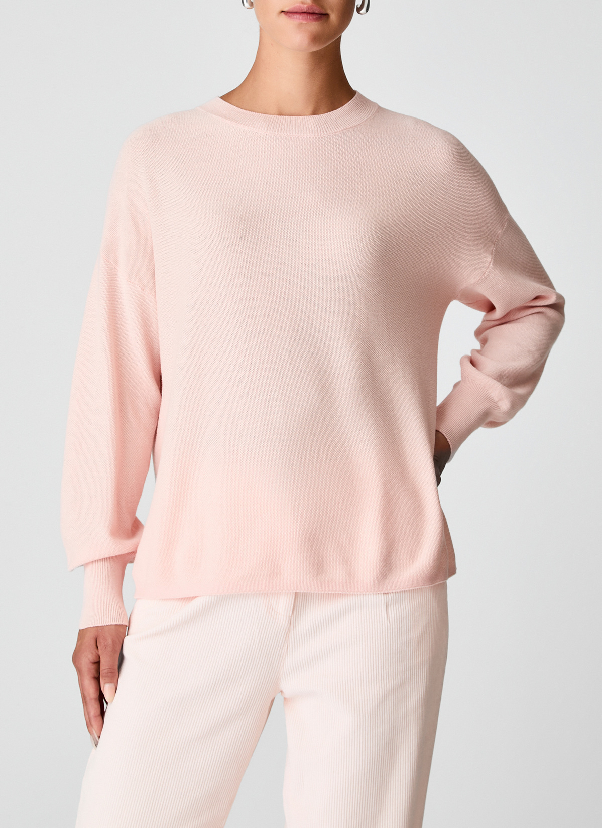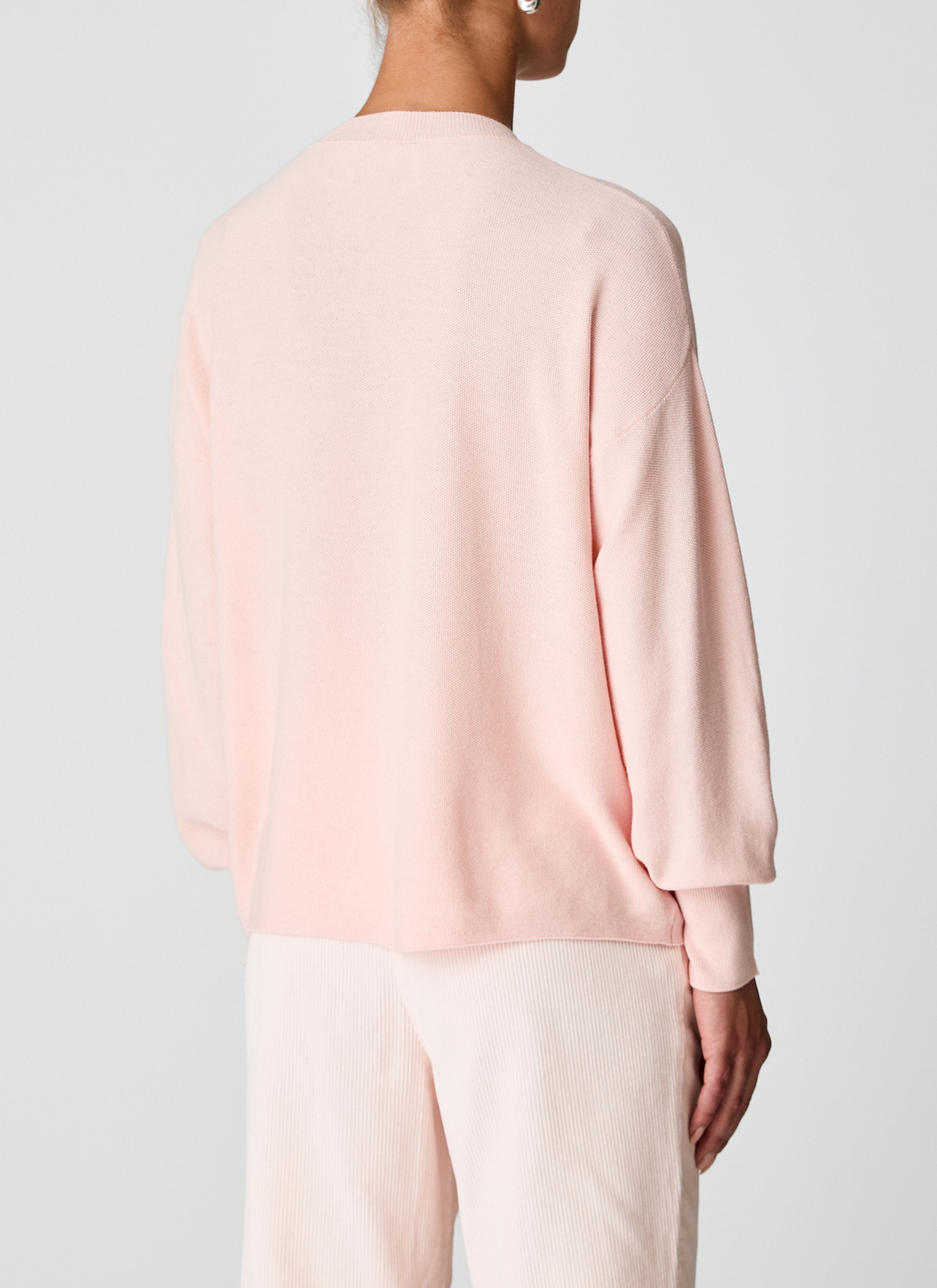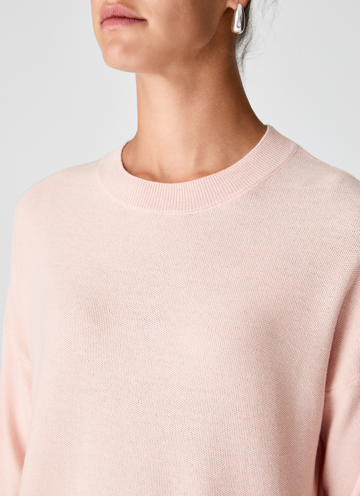 Ein Pullover, der Komfort und Stil mühelos verbindet: Der klassische Rundhalsausschnitt, überschnittene Schultern und der legere Oversized Fit verleihen diesem Modell eine moderne, entspannte Ausstrahlung. Gefertigtaus feiner Merinowolle und weicher Baumwolle ist der Pullover wunderbar temperaturregulierend, atmungsaktiv und angenehm auf der Haut. Der Griff ist körnig und zugleich weich, was dem Pullover eine besondere Haptik und Struktur verleiht. Die hochwertige Verarbeitung und dezente Stricktextur machen ihn vielseitig kombinierbar – ob zu Jeans, Stoffhosen oder Röcken. Ideal für kühlere Tage, an denen Komfort und Stil gleichermaßen gefragt sind. Ein vielseitiges Strickteil mit dem gewissen Etwas.