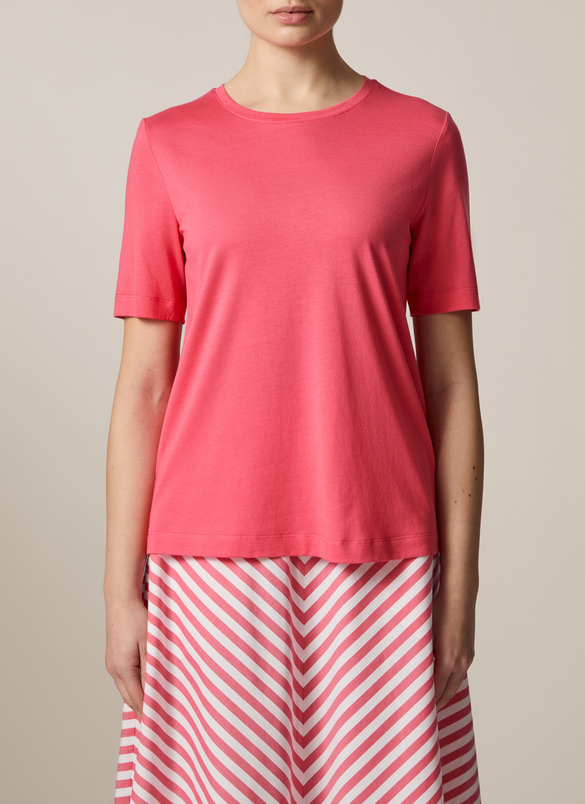 Essential: Basic Shirt mit Rundhalsausschnitt!: Das Shirt überzeugt mit seiner zeitlosen, legeren und lockeren Passform. Material: Die natürliche Baumwoll-Modal-Mischung sorgt für ein besonderes angenehmes Tragegefühl. Besonders: Dieses Kleidungsstück ist ein echter Allrounder, der in keinem Kleiderschrank mehr fehlen sollte. Es ist nicht nur bequem sondern ebenso auch stylisch und je nach dem was Du dazu kombinierst entsteht ein lässiger oder eleganter Look. Für jede Gelegenheit was dabei.