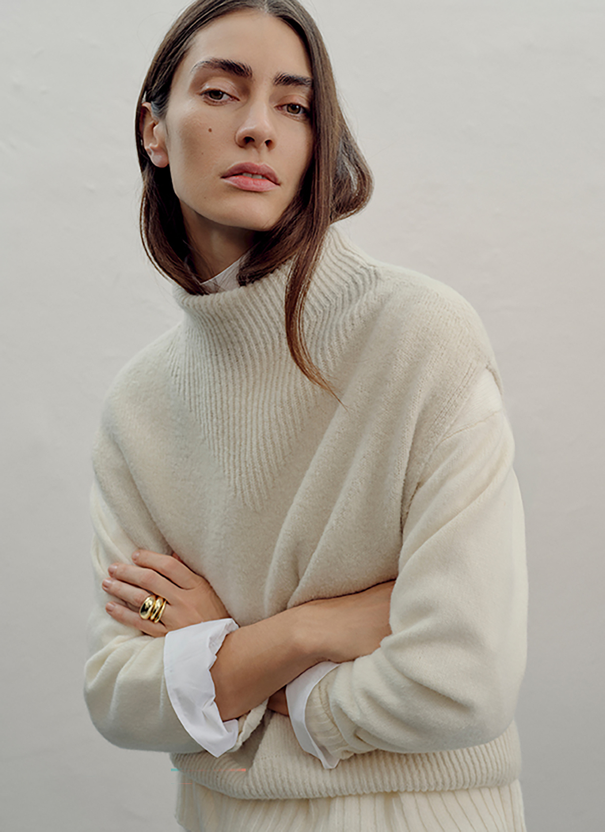 MAERZ Men’s Kleidung Stehkragenpullunder|wolle-baumwolle-mischung | New White