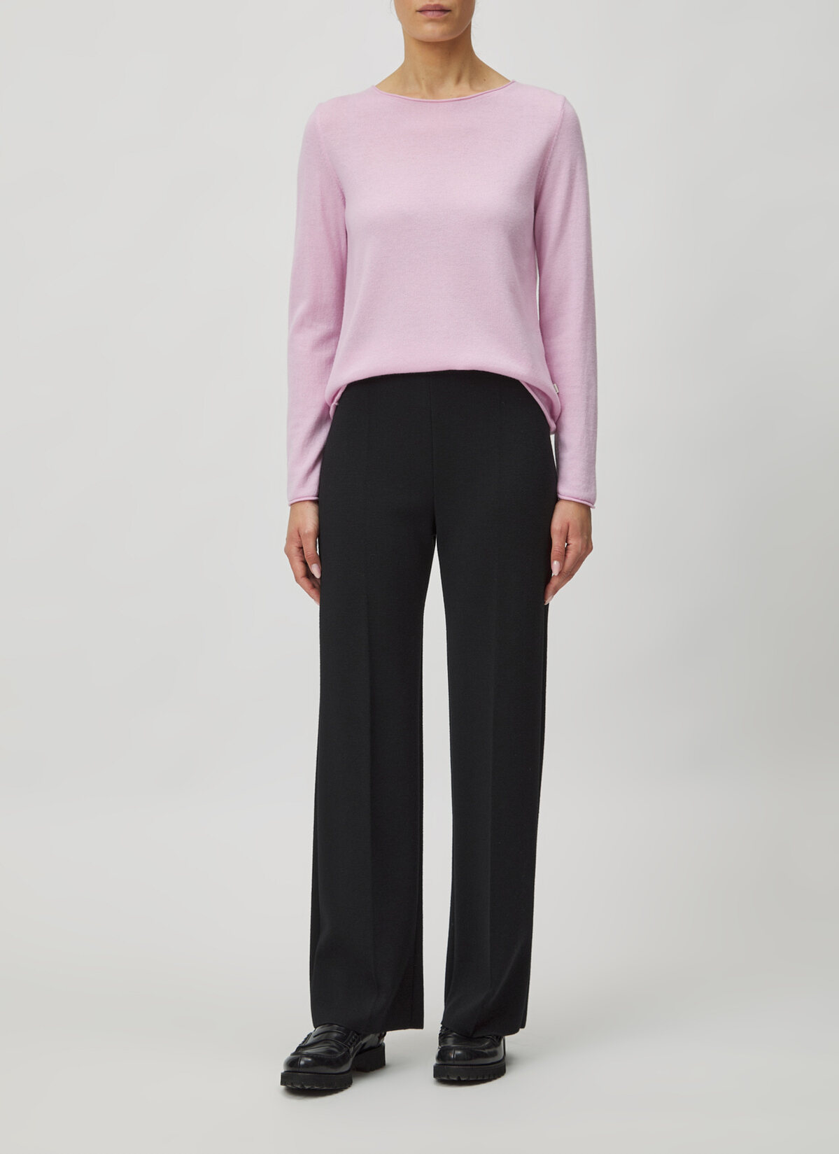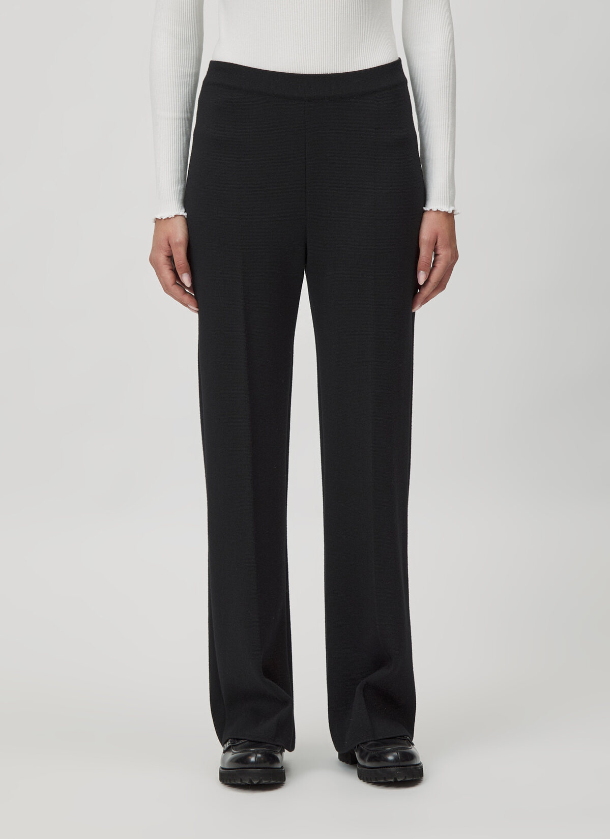 Strickhosen sind die besseren Jeans: Die hochwertige verarbeitete Hose präsentiert sich mit geradem Bein, elastischem Bund und überzeugt dank der hochwertigen Merinowolle im Milano Rib. Durch die hochwertige Stricktechnik im Milano Rib ist die Strickhose elastisch und bleibt dennoch formstabil. Material: fein und weich aber enorm strapazierfähig mit einer festen und gleichzeitig elastischen Haptik. Haptik: kerniger, kompakter Griff. Styling-Tipp: Ganz nach dem Motto „Ton in Ton“ kombiniertkombiniert mit einem passenden Pullover (Art. Nr. 300000).