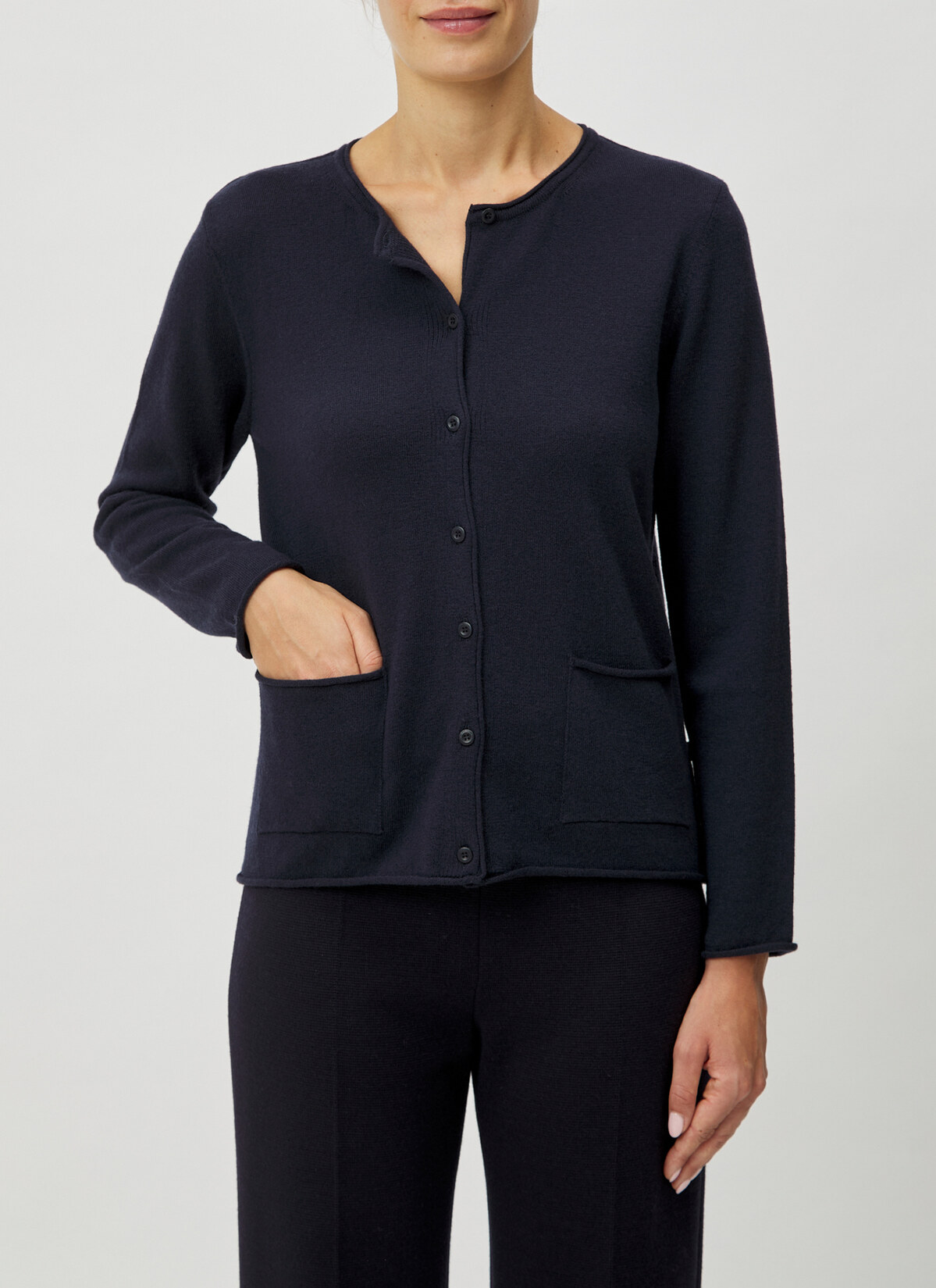 Kuschelig weiche Geelong-Wolle! Strickjacke mit durchgehender Knopfleiste und zwei aufgesetzten Taschen in hochwertiger Geelong Qualität. Material: die hochwertige Geelong-Wolle ist mulesingfrei und wird in Italien zum Premiumgarn versponnen. Haptik: klassisches Maschenbild mit leichtem und softem Wollgriff. Tragegefühl: leicht und angenehm wärmend. Hochwertige Verarbeitung mit handgekettelten Nähten und elastischen Bündchen. Styling-Tipp: ganz nach dem Motto „Ton in Ton“ kombiniert mit unserem Pullunder (Art. Nr. 368200).