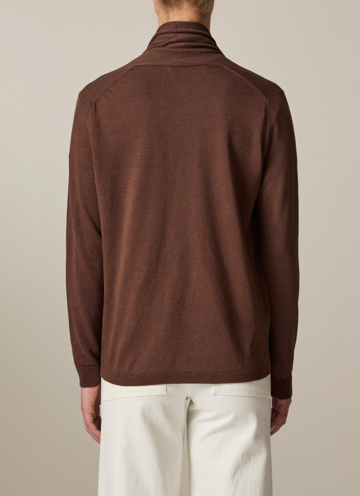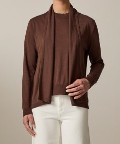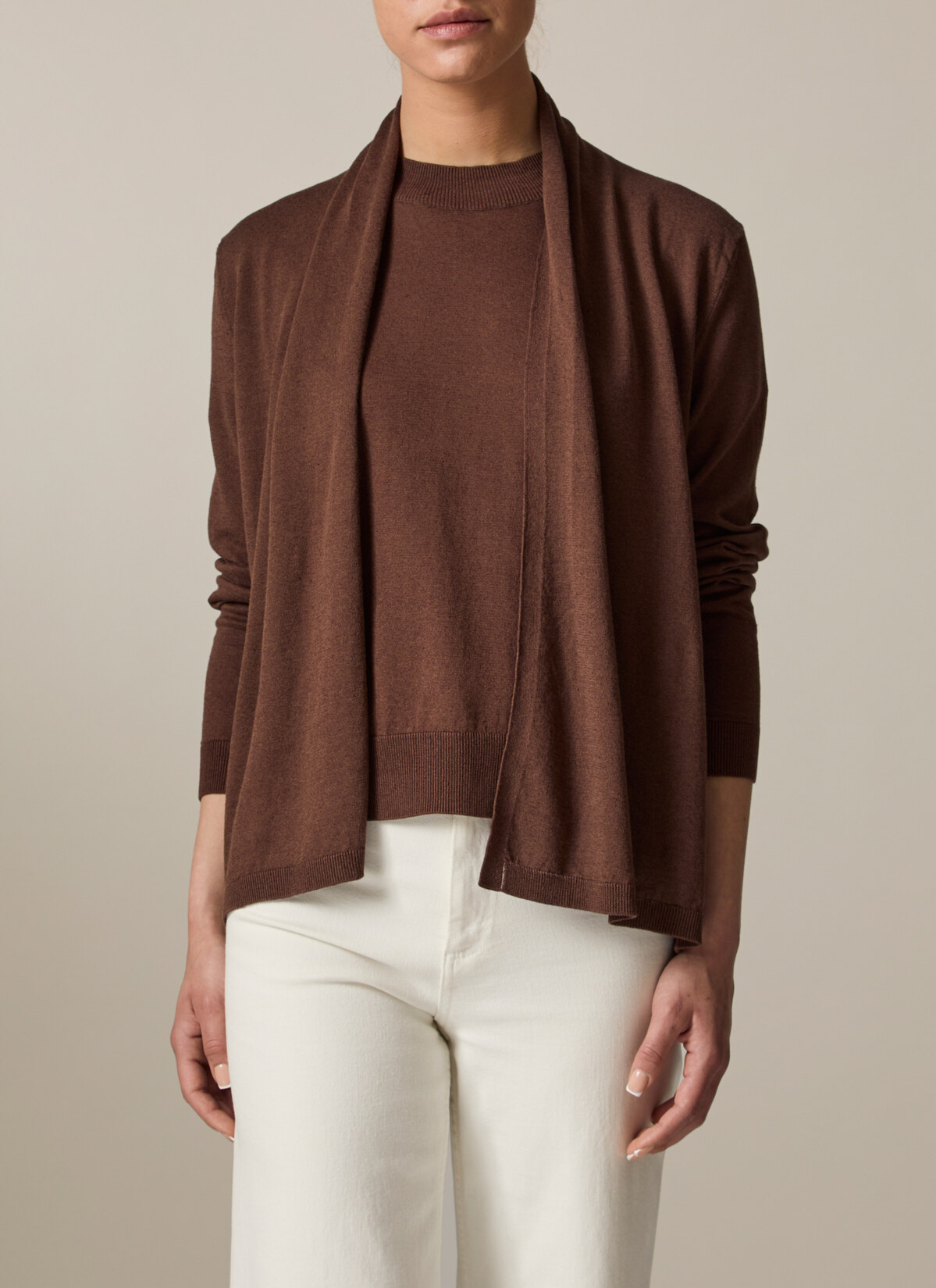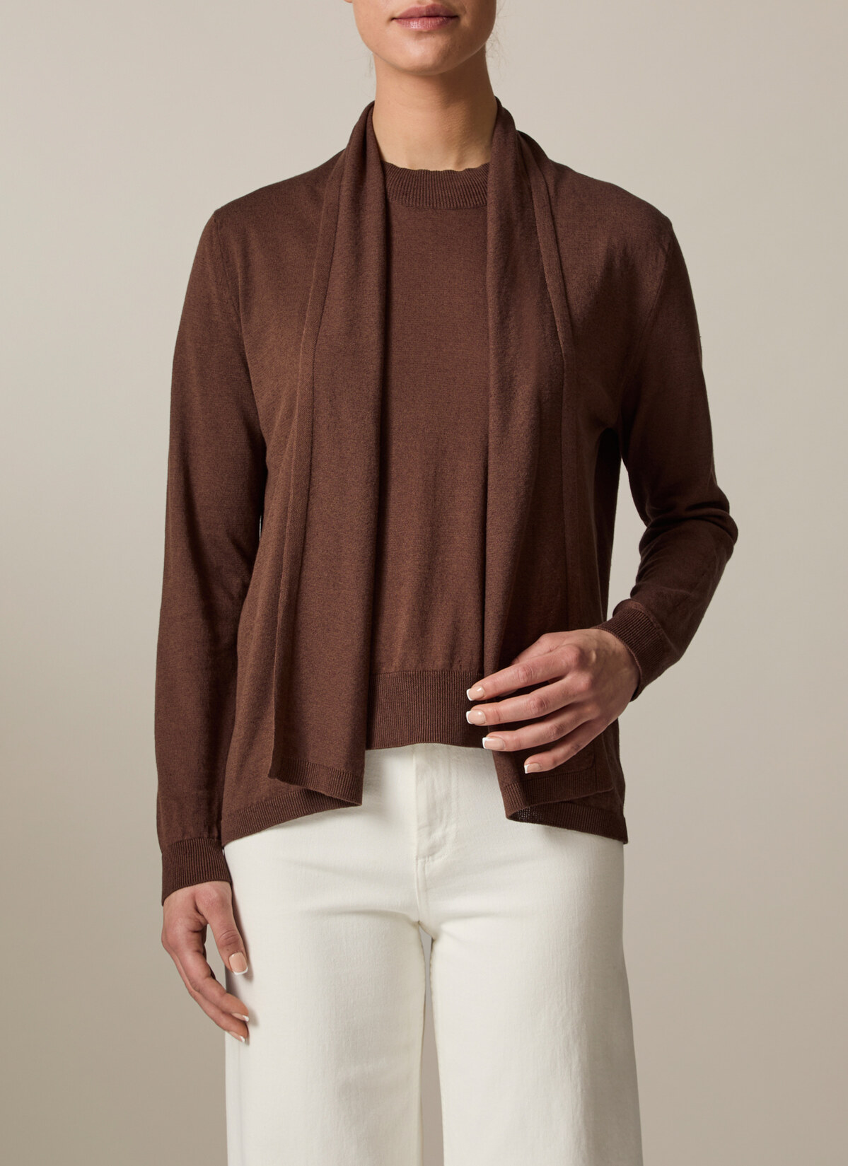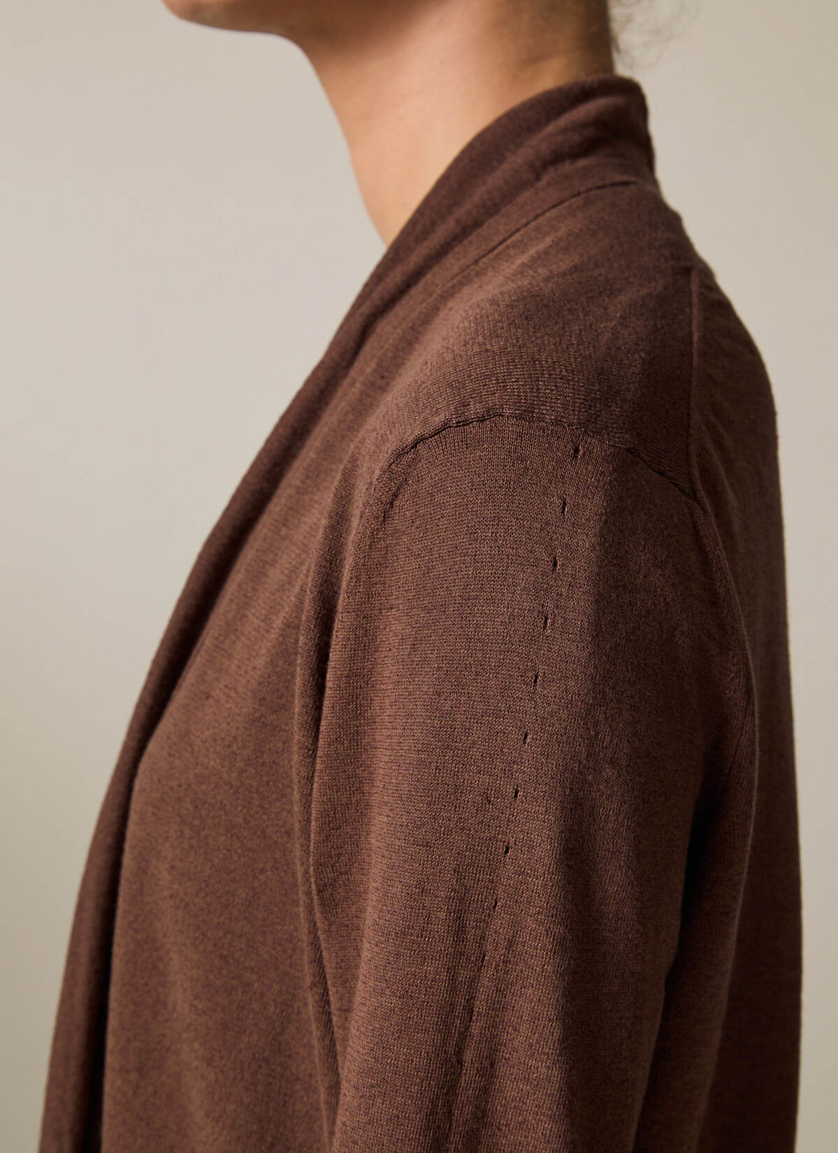 Die Strickjacke im Modern Fit zeigt sich mit einer klassischen französischen Schulter und einem offenen Schnitt ohne Knöpfe, der für eine zeitlose, schlichte Optik sorgt. Material: der Mix aus Biobaumwolle und Leinen ist besonders atmungsaktiv und bietet hohen Komfort und Nachhaltigkeit. Haptik: weich und kühl. Styling-Tipp: kombiniert mit Jeans oder einem Rock für einen entspannten, stilvollen Look.
