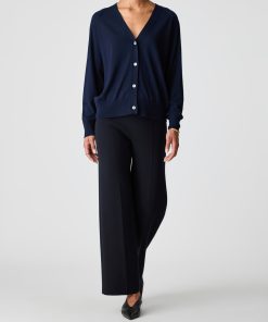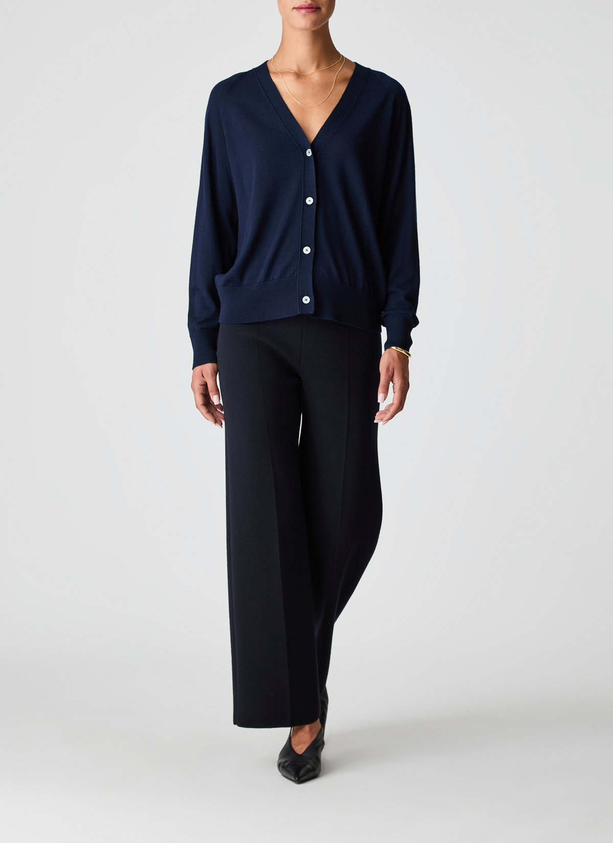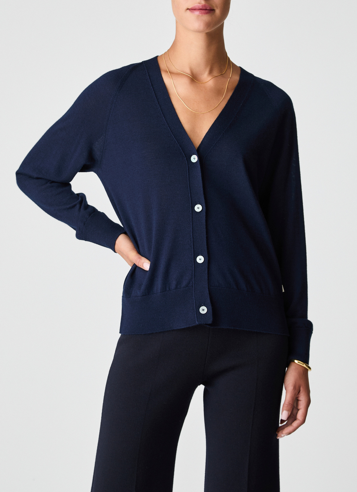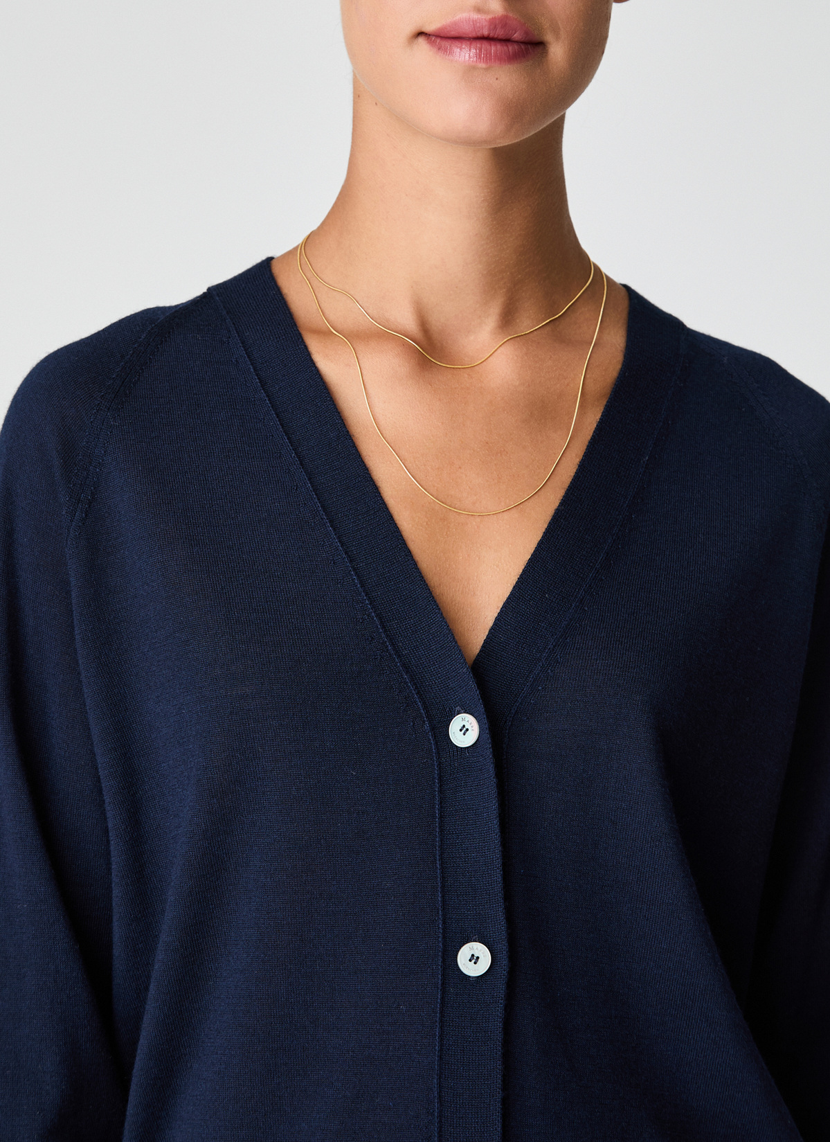 Diese Damen Strickjacke verbindet modernen Komfort mit edler Materialqualität. Die locker geschnittene Passform mit überschnittenen Schultern und leicht voluminösem Schnitt sorgt für einen lässig-eleganten Look. Zarte Pointelle-Muster an den Ärmeln setzen feine Akzente und unterstreichen die feminine Ausstrahlung. Die hochwertige Mischung aus Merinowolle, Seide und Kaschmir ist angenehm leicht, temperaturregulierend und wirkt kühlend auf der Haut – ideal für warme Tage und laue Abende. Sie fühlt sich außergewöhnlich weich und glatt an und sorgt den ganzen Tag über für höchsten Tragekomfort. Ein vielseitiges Lieblingsstück für stilvolle Auftritte bei jeder Gelegenheit.