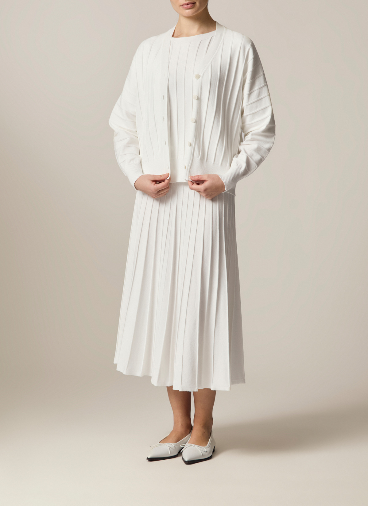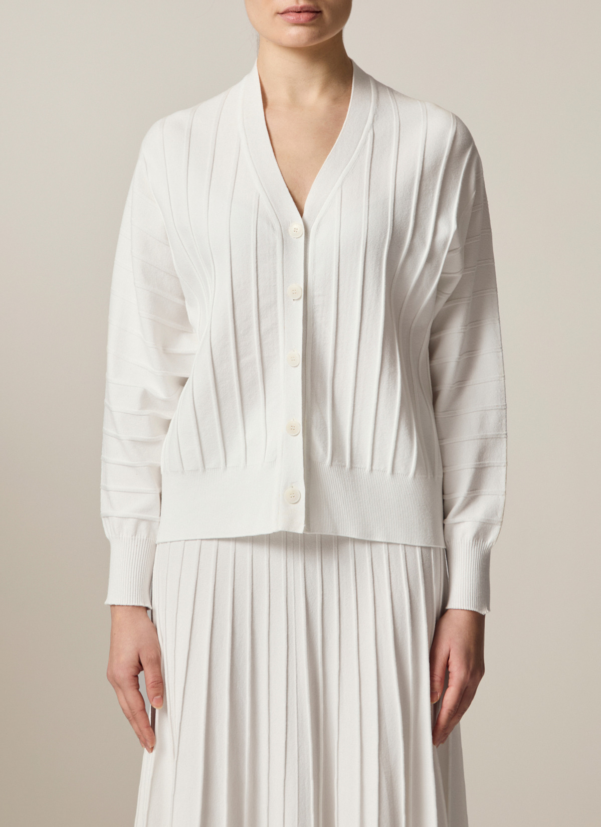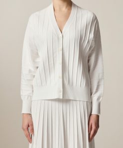 Die Strickjacke zeigt sich im Modern Fit mit V-Ausschnitt und breitem Statement Rippensaum. Die Längsrippen Details verleihen der Jacke das besondere Etwas. Material: Durch die Viskose-Mischung ist die Strickjacke elastisch und bleibt dennoch formstabil. Haptik: Die Strickjacke ist weich und glatt im Griff. Styling-Tipp: im Set kombiniert mit dem passenden Rock (Art. Nr. 372500) wirkt der Look besonders modern.