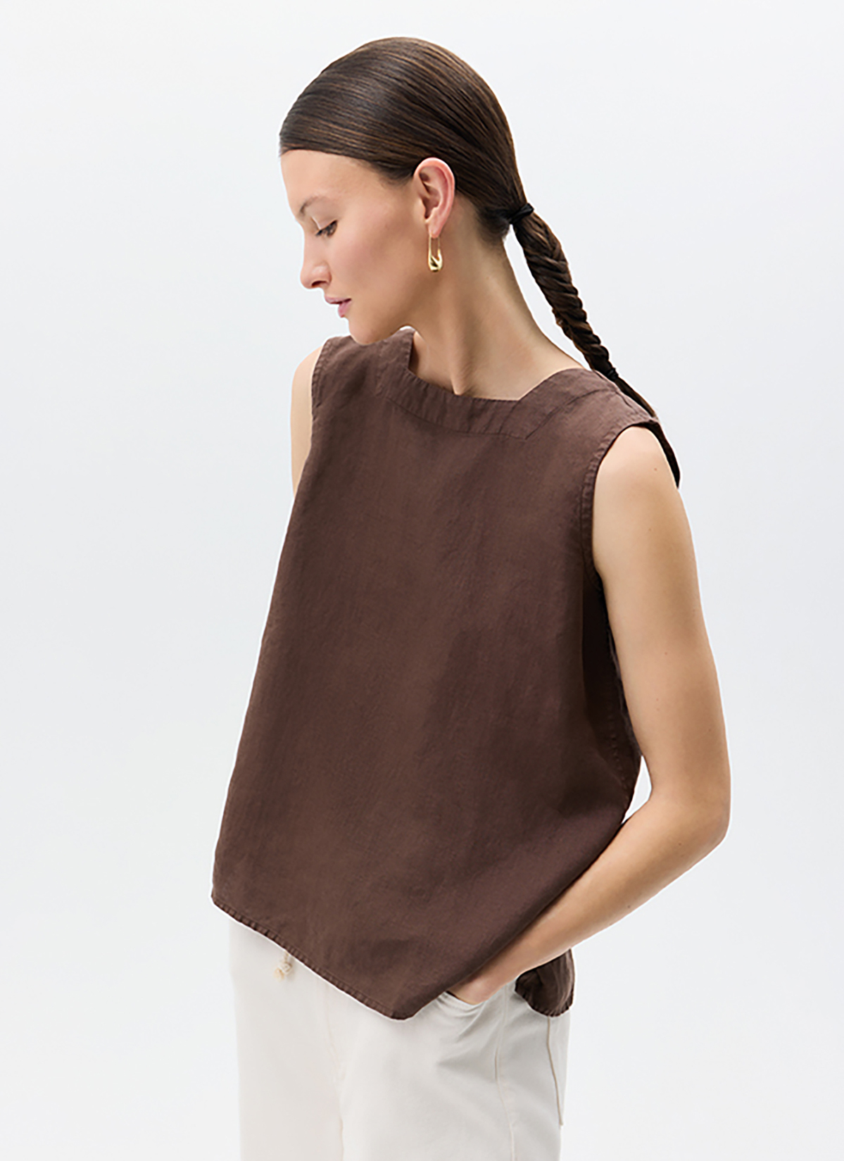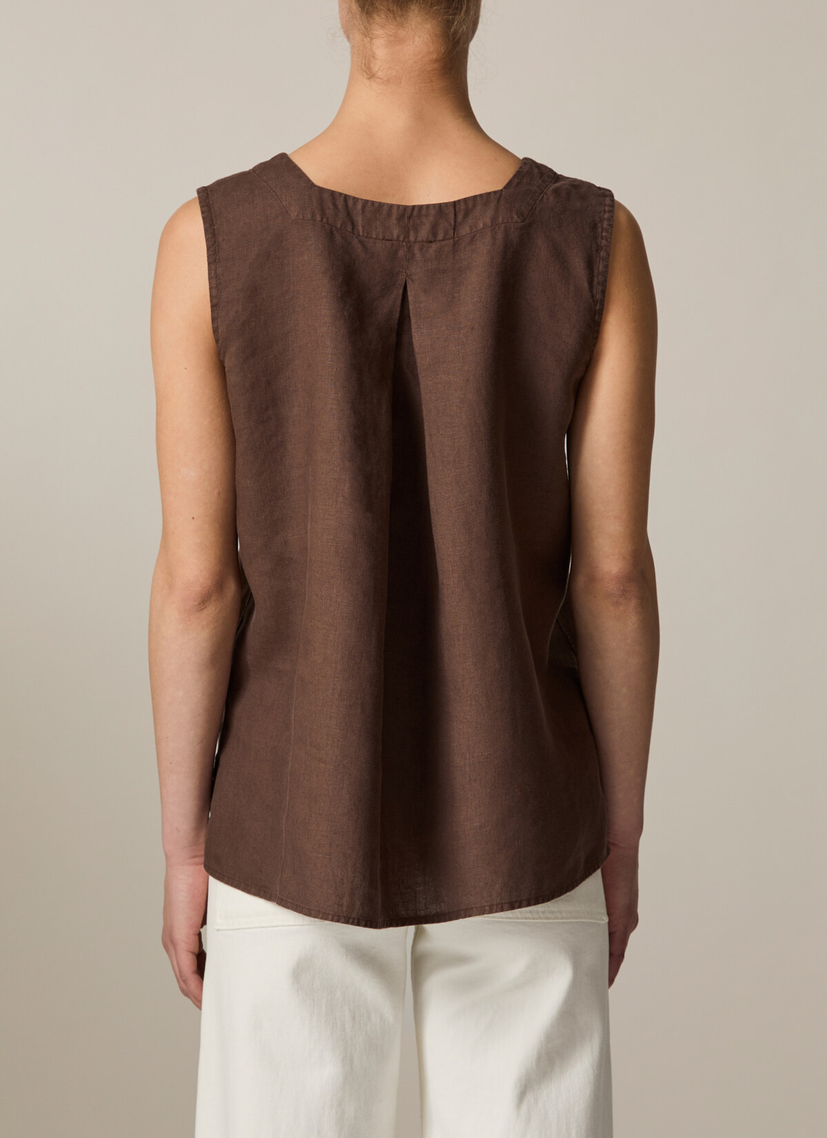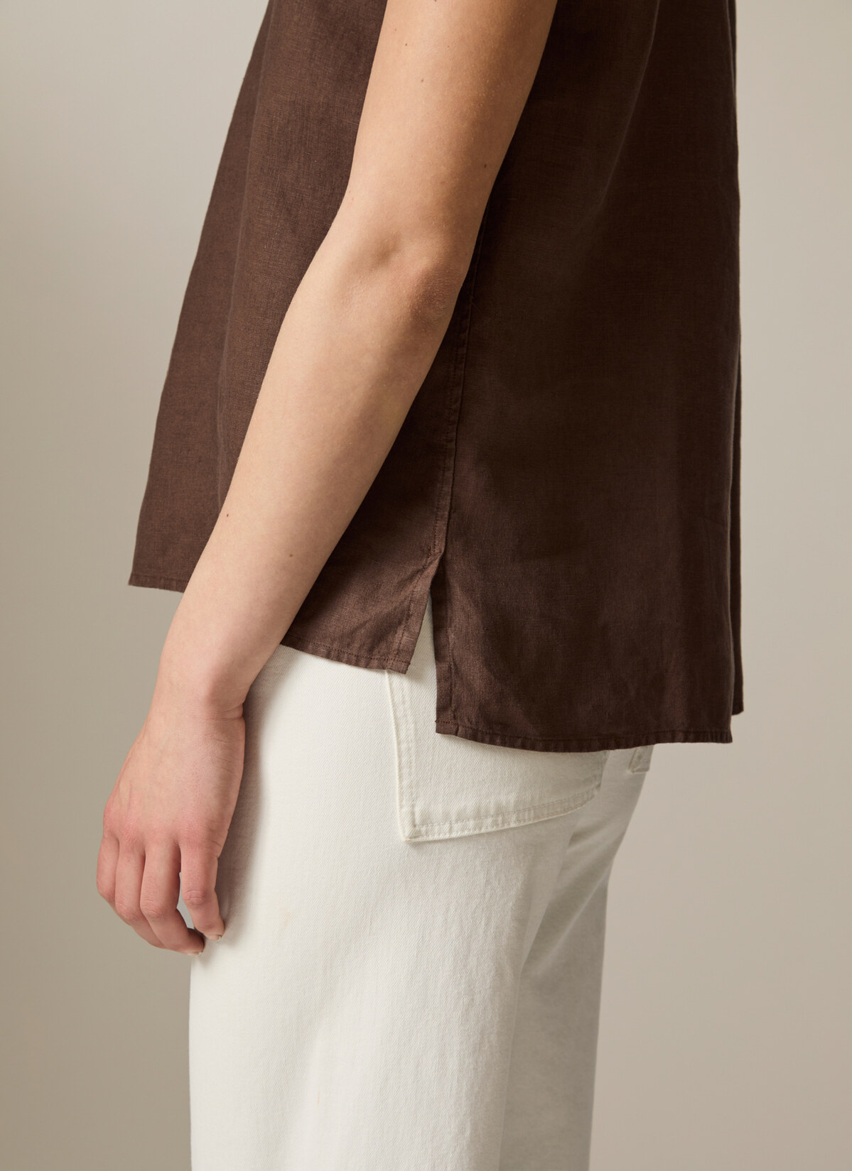 Das Top im Modern Fit zeigt sich mit geometrischem Ausschnitt sowie einer femininen Kellerfalte auf der Rückseite. Material: gefertigt aus Leinen ist das Top wunderbar kühlend und atmungsaktiv. Haptik: kernig und kühl im Griff. Styling-Tipp: kombiniert im Set mit der passenden Shorts (Art.Nr.:162200)wirkt der Look besonders harmonisch. Good to know: durch den Garment Dye Färbeprozess ist jedes Stück ein Unikat.