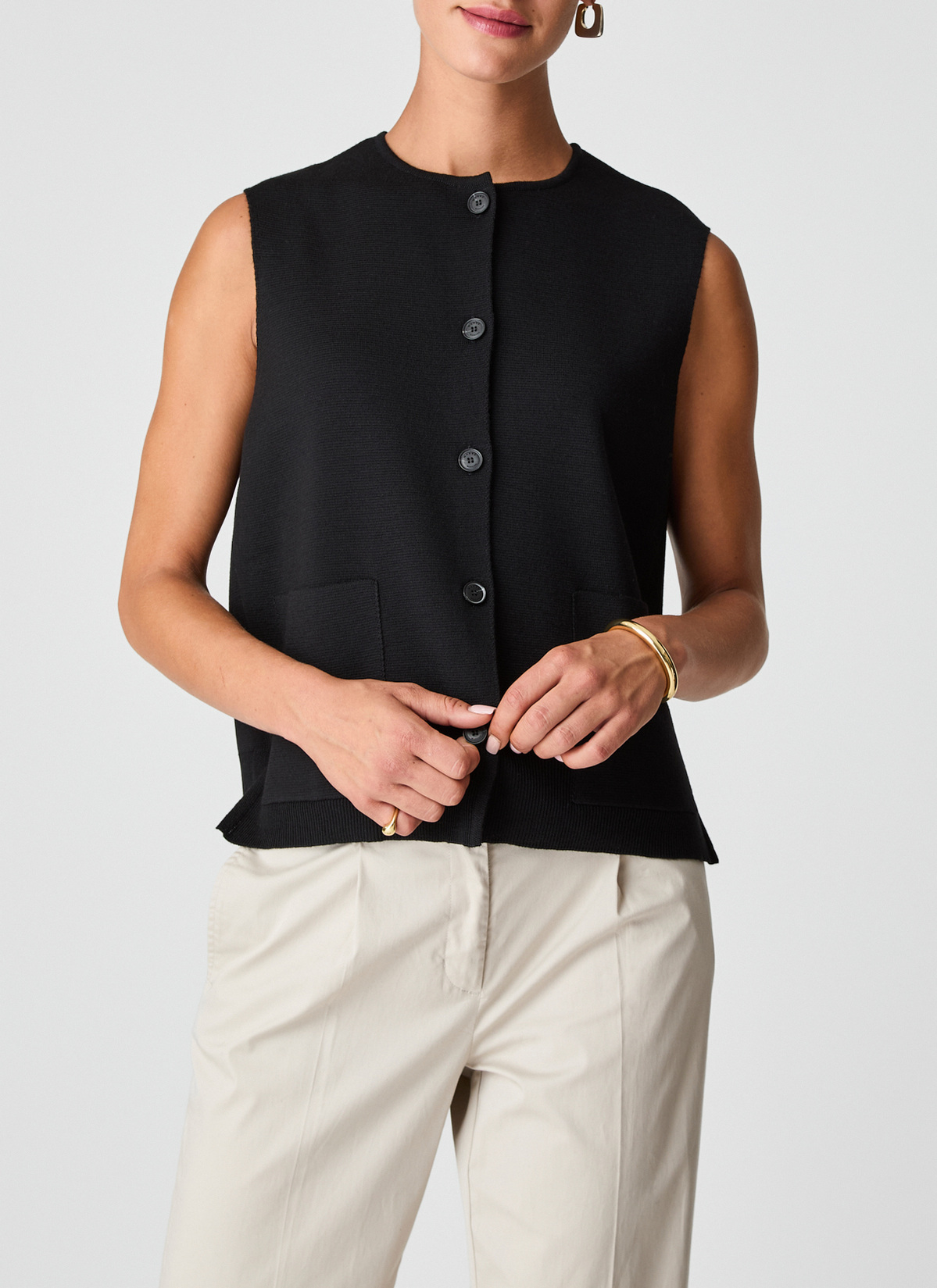 Der moderne Klassiker: die Strickweste! Dieses Modell überzeugt durch das klassische Design mit zwei aufgesetzten Taschen und einer hochwertigen Milano Rib Struktur. Material: Merinowolle hat einen hohen Tragekomfort, ist feuchtigkeitsregulierend, geruchsneutral und besitzt eine wärmende sowie temperaturausgleichende Funktion. Elastisch und Formstabil. Haptik: kerniger, kompakter Griff. Hochwertige Verarbeitung mit handgekettelten Nähten und elastischen Bündchen.